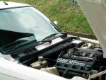 noch schwarze DEs, eine Stahldomstrebe, hinten 10x17 mit 245/35 und vielleicht
