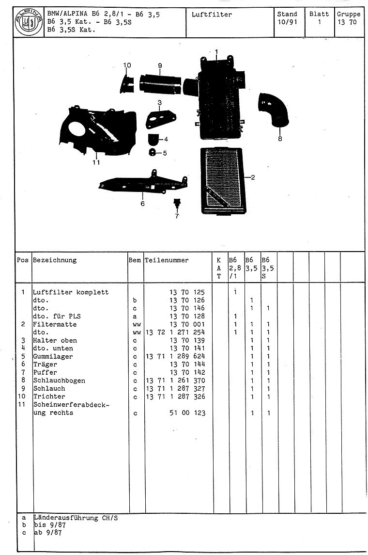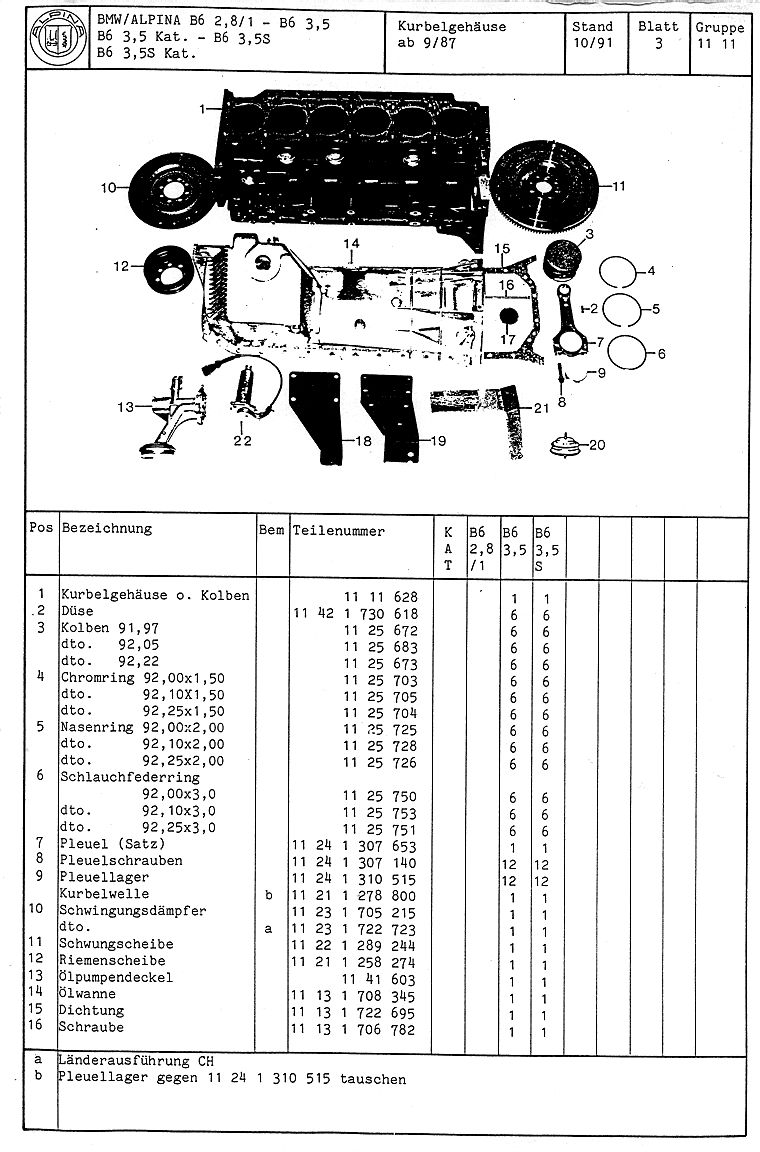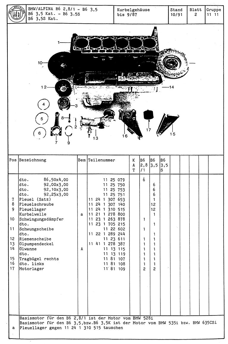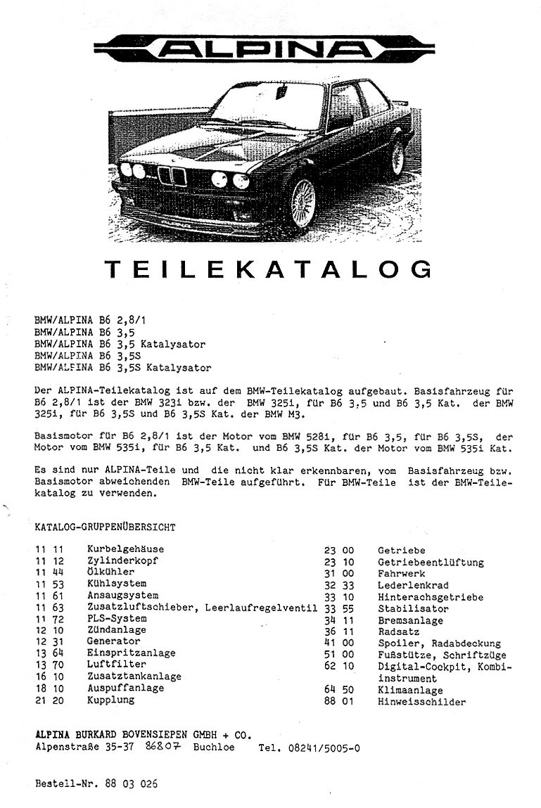 ALPINA B6 Teilekatalog