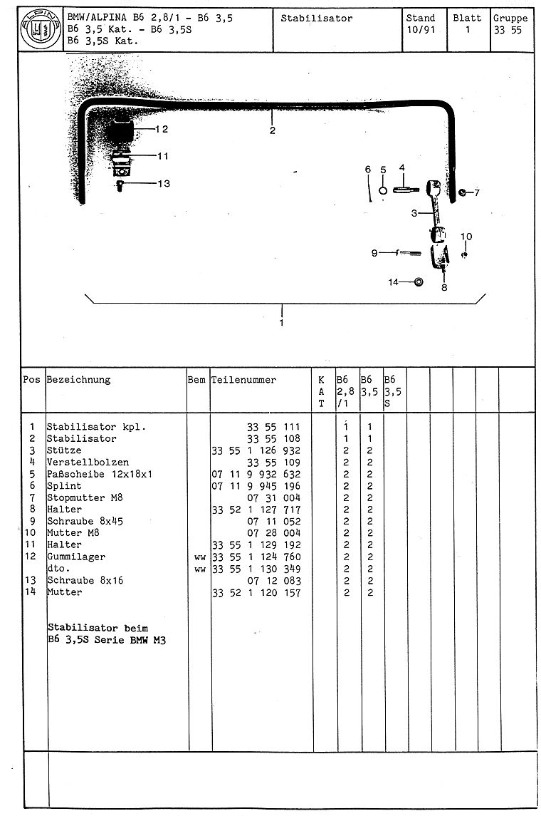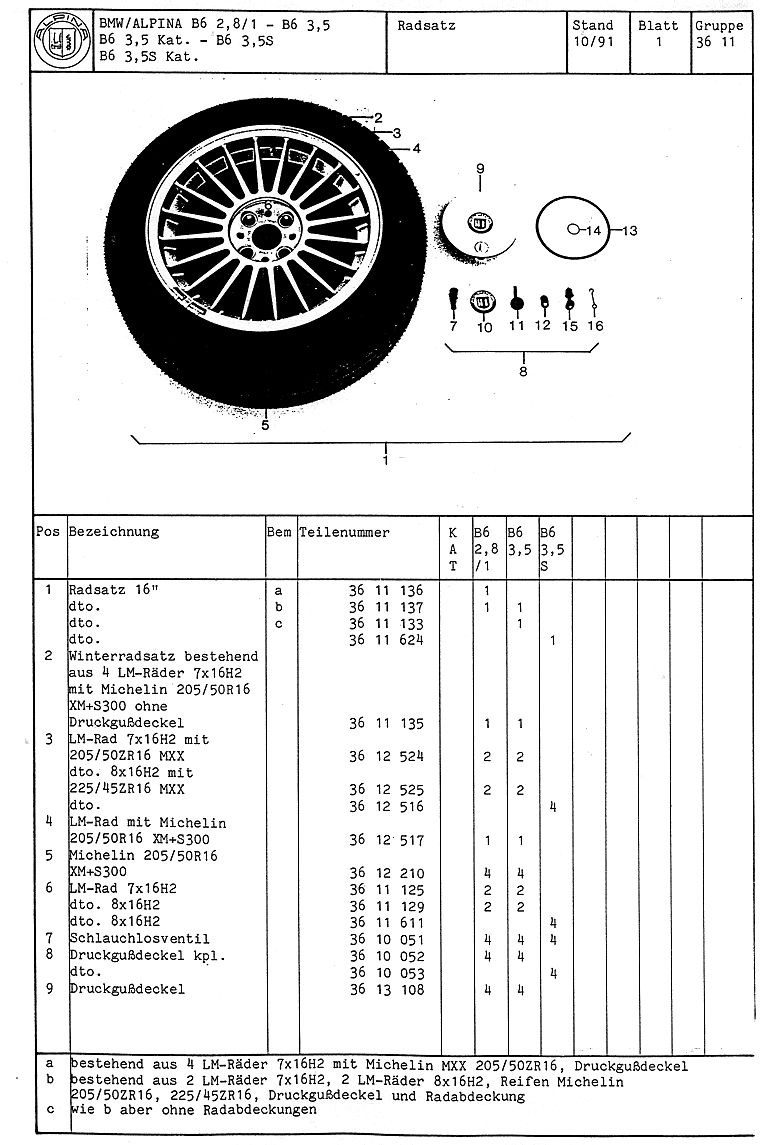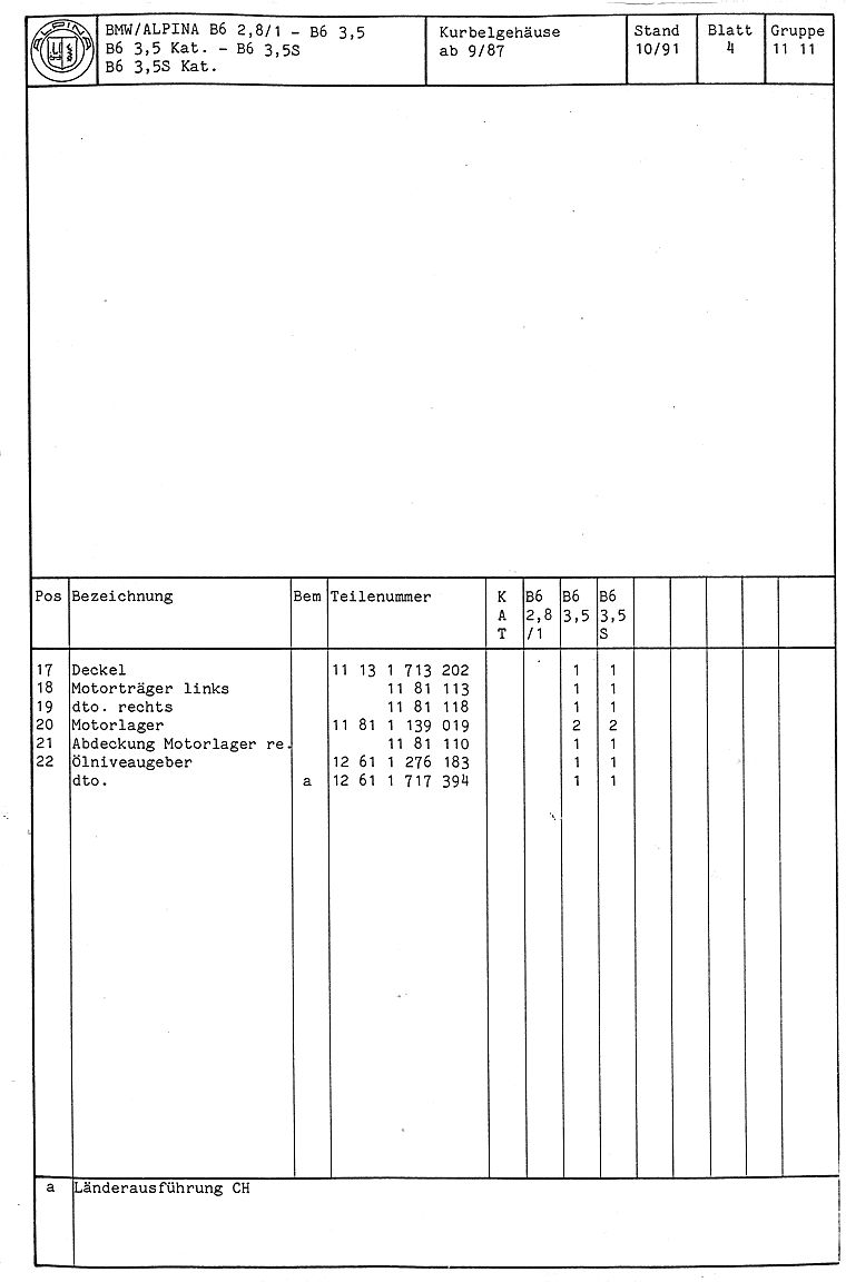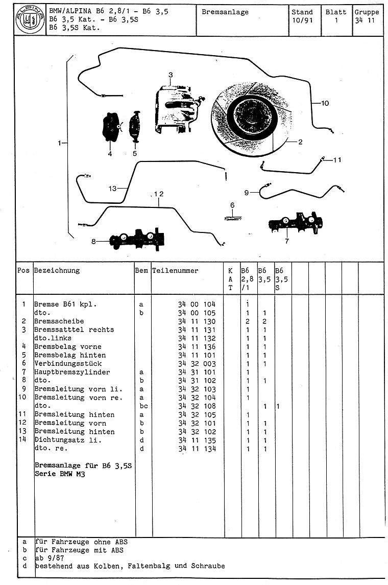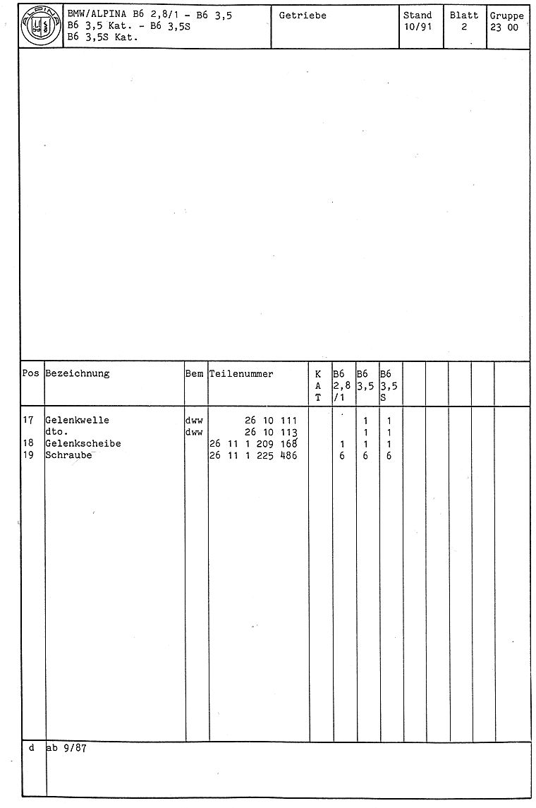 ALPINA B6 Teilekatalog
