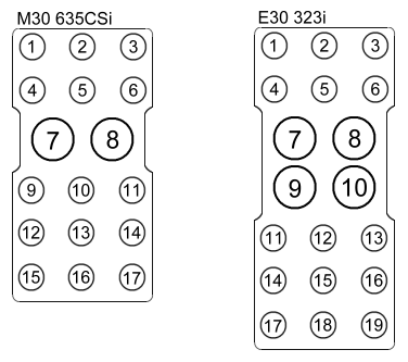 Die ganz frühen M30 sind mit einem 17-poligen Motorstecker ausgestattet. Der E30 vor 5/85 mit einem ähnlich aussehenden aber 19-poligen eckigen Stecker. Da die eckigen