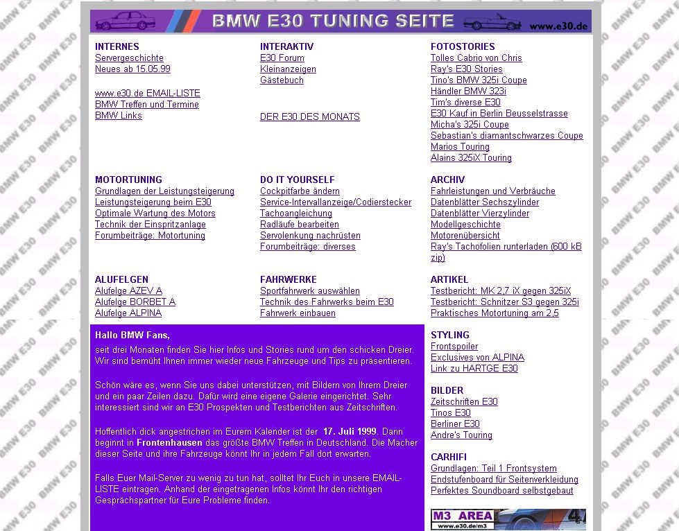 startete die "BMW E30 TUNING SEITE unter www.e30.de mit dem