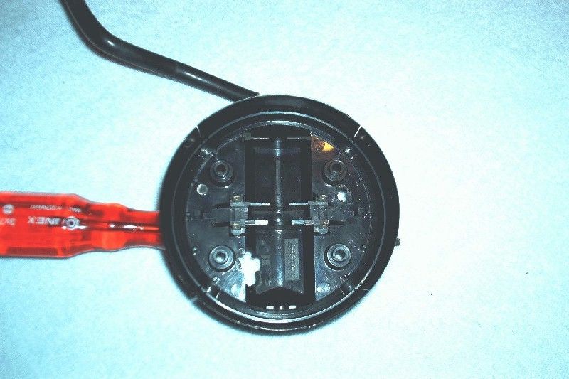 Kosten: Spiegel ca 69 Euro 2 Komplette BMW Spiegel mit Kabelbaum (habt Ihr normal ja schon, ansonstensonst beim Schrotti oder eBay) Schrauben 8 St. 0,35 Euro Schrauben 4 St. 0,22 Euro 69,57 Euro Zeit: Gesamtzeit um einen Spiegel umzubauen ca ½ Stunde. Lohnt sich dass oder nicht?? BMW-Spiegel demontieren: Zuerst zerlegen wir die BMW-Spiegel. Wir holen das Spiegelglass raus. Unterhalb der Schrifft ( E1 01 * 17111) ist eine kleine Öffnung. Guckt man durch diese Öffnung muß man 3 Gruben sehen. Diese Gruben sind Teil eines Ring der das Spiegelglas verankert mit dem Stellmotor. Mit einem flachen Schraubenzieher in diese Öffnung rein, in einer der 3 Gruben wird der Schraubenzieher eingesteckt, dann den Ring linksum drehen (È), ungefähr 3 mm. Jetzt sollte die Verankerung gelösst sein. Mit dem Schraubenzieher leicht das Spiegelglas heben, oder den Spiegel auf dem Kopf halten damit das Glas rausfallen kann. Die 4 Schrauben lösen womit der Stellmotor am Spiegelhaus festsitzt und Motor rausnehmen, natürlich komplett mit Kabel. Die Kabel könnt Ihr so rausziehen, eventuell mit ne kleine Zange. Der Rest der original Spiegel kann jetzt zur Seite gelegt werden, das brauchen wir nicht mehr. Ihr könnt auch hier gucken: https://www.e30.de/fotostory/f00457/f00457.htm Stellmotor preparieren: Wenn Ihr das Glas entfernt habt, könnt Ihr die 4 Schrauben womit der Verstellmotor am Spiegelhaus festgemacht ist lössen. Der Verstellmotor samt Kabelbaum solltet Ihr jetzt rausnehmen können (Bild 2). Entfernt den kabelbaum durch einfach die Pins hinten an der schwarze Kappe rauszuziehen. Keine Bange, die Farbcodierung steht auf der schwarze Kappe drauf!! Klickt den Stellmotor kurz an ein Spiegelglass des M3-Look Spiegels um zu sehen wie der Motor montiert wird (Bild 3). Man sieht dass der Motor sich um 10-15 dreht. Muß so sein. Ihr könnt den Motor am Spiegelglass dran lassen. Nimmt ein Tuch und legt den