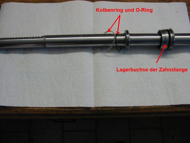 vom Druckstück der Zahnstange auswechseln, fetten und einsetzen. Die