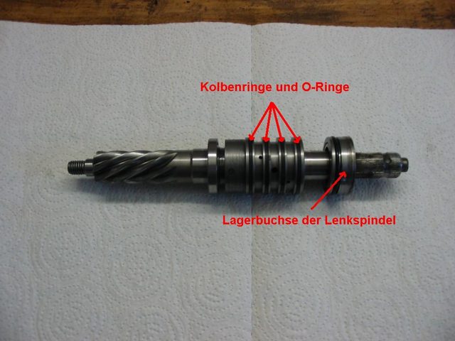 O-Ringe der Lenkspindel erneuern. Darauf achten dass die Kolbenringe richtig