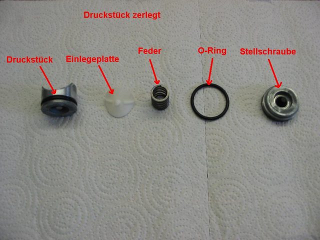 Feder aufstecken und den Deckel mit neuem O-Ring aufsetzen und festschrauben.