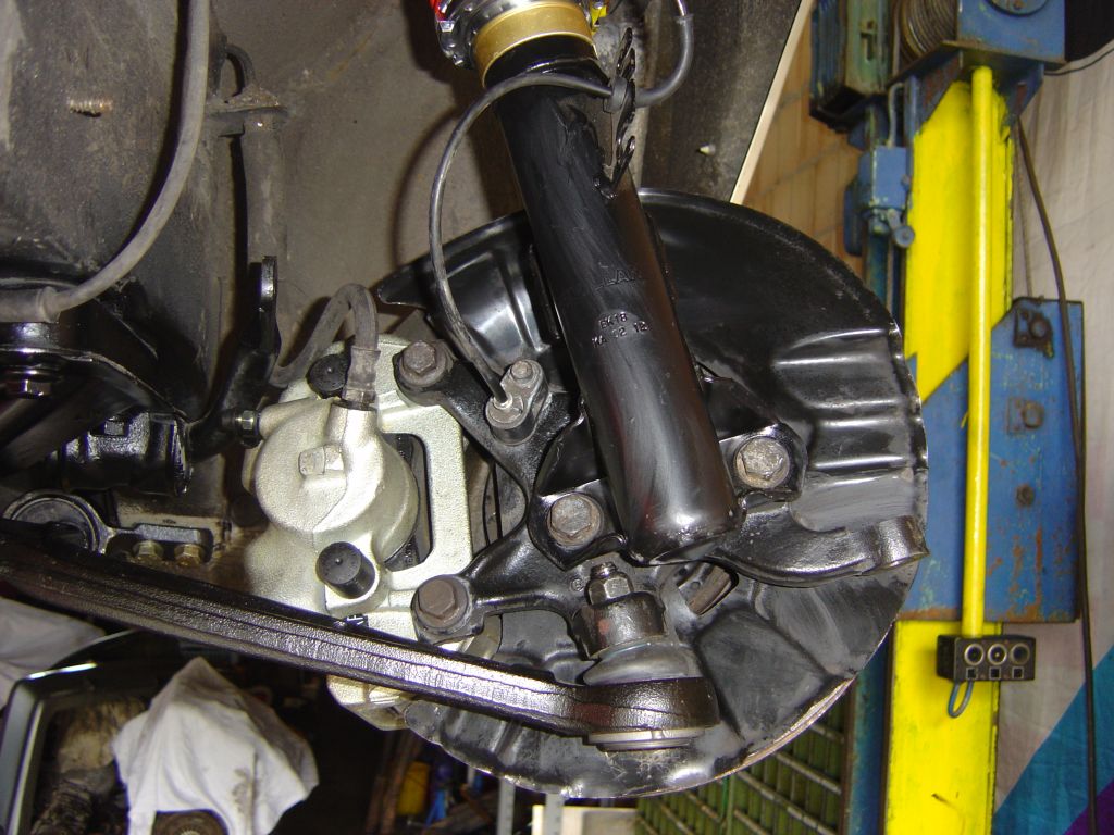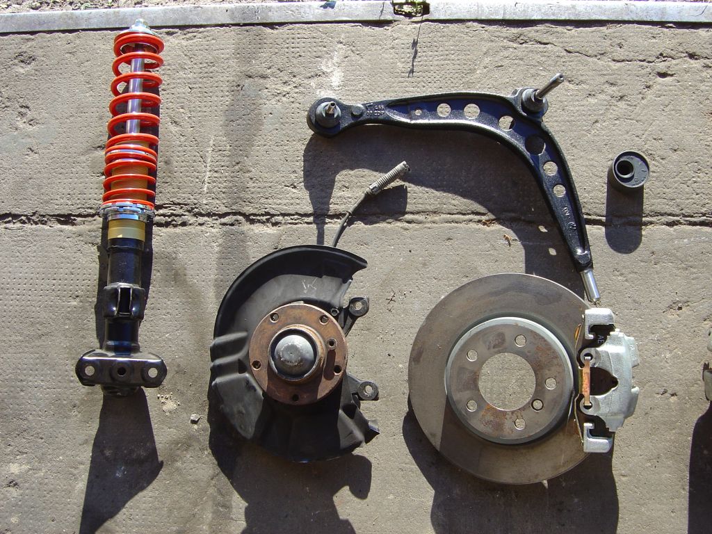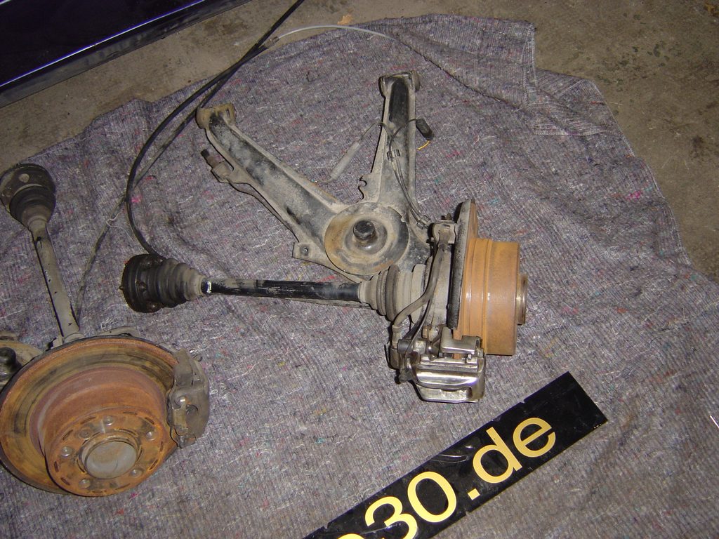 Achsschenkel eines 323ti inkl. Bremsanlage gekauft. Die Bremse ist mit