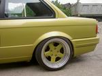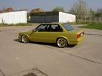 Hallo ich wollte euch mal meinen E30 vorstellen. Ich habe ihn 1999 als originalen 320i gekauft, mit nichts weiter als Sportsitze mit Sitzheizung. Mein Kriterium war kein Rost und unfallfrei. Als ich vor 6 Jahren das Auto gefunden hatte, war der Kauf schnell besiegelt, denn �u�erlich hatte er nur einen kaputten Kotfl�gel und eine kaputte Sto�stange. Das hatte mich nicht weiter gest�rt und bei 1000Dm hatte ich nicht weiter �berlegt. Leider w�hrte die Freude nicht lange da ich als ich ihn abholte auf der Fahrt von Hamburg nach Rostock einen Motorschaden hatte. Dies war eigentlich auch nicht schlimm da ich sowieso vorhatte den Motor umzubauen. Der 2,0l Motor sollte eigentlich die erste Saison halten aber wie gesagt es kommt immer alles anders als man denkt. Leider hatte ich mit dem Rost auch nicht so viel Gl�ck, alle Karosserieteile die sonst immer Rost haben waren bei dem Auto rostfrei. Nur sah es mit dem Unterboden nicht so gut aus. Beide Inneren Radl�ufe waren durch worauf ich sie raus flexte und ungef�hr 5cm h�her wieder ansetzte, wodurch ich jetzt sch�n viel Platz habe zum einfedern. Au�erdem hatte ich auf der Fahrerseite, nachdem ich das ganze Blech was mit Rost befallen war rausgetrennt hatte, ein 40x20cm gro�es Loch. Habe das alles schick fein fertig gemacht und konnte mich endlich dem Plan widmen den ich vorhatte. Habe dann einen 2,0l M50 Motor mit VANOS bekommen den ich dann auch eingebaut habe. Es wurden die Kotfl�gel ausgestellt AZEV A R�der in den Dimensionen 8,5 und 10X17 Mit 215/40 und 245/35 verbaut und ein Fahrwerk von KAW mit h�rteverstellbaren KONIs verbaut. Zu den Karosseriearbeiten/ T�rgriffe entfernt, Zierleisten und Schl�sser entfernt. Die T�ren werden jetzt per Knopfdruck die in den M3 Spiegeln angebracht sind ge�ffnet. Au�erdem sind die Waschd�sen, die BMW Embleme und das Antennenloch geschlossen worden. Der Tankdeckel wurde auch von der h�sslichen Beule befreit. Habe noch M Technik Sto�stangen verbaut und die Auspuffaussparung mit GFK geschlossen. Zum Innenraum / ich habe dort eine beige Lederausstattung aus einer LIMO eingebaut den Himmel schwarz lackiert ein elektrisches Schiebedach und elektrische Fensterheber nachger�stet. War eigentlich noch nicht fertig da der Motor noch nicht lief und ich keine Probefahrt machen konnte, aber der Lackierer hatte Stress gemacht worauf ich das Auto zum Duschen brachte. Ich entschied mich nach langem �berlegen f�r Ph�nixgelb vom E46 M3 da das Modell gerade raus kam und die Farbe neu war. Ich finde jetzt auch das es eine gute Entscheidung war da diese Farbe immer noch nicht h�ufig anzutreffen ist. Nach dem lackieren machte ich mich ans zusammenbauen und daran den Motor zum laufen zu bringen. Bei der ersten Probefahrt im Oktober 2000 merkte ich gleich das es eine saubl�de Idee war das Auto zu lackieren ohne vorher gefahren zu sein. Es schliffen alle 4 R�der worauf ich erst mal auf Federwegsbegrenzer fuhr (Ich rate jedem davon ab es f�hrt sich richtig beschissen). Bin so einen Monat gefahren und habe am 3 Tage bevor ich das Auto abmelden wollte noch ein Reh �berfahren das der Gegenverkehr mir vors Auto geschleudert hat. Es gab auf alle F�lle genug von der Versicherung um alle 4 Radl�ufe noch mal neu zu machen wobei der rechte Kotfl�gel noch einen angedeuteten Lufteinlass bekam. Da die beige Lederausstattung nicht so richtig zum Ph�nixgelb passte schaute ich mich nach Ersatz um und war der Meinung mit E36 Lederst�hlen eine gute Wahl zu treffen. Habe dann die R�cksitzbank von meinem WinterE30 ausgebaut und diese zum Sattler gebracht. Bin so die Saison 2001 gefahren und recht zufrieden bis mir ein 3,0liter Motor mit Vorderachse in die H�nde fiel. Nicht lange nachgedacht gekauft und den M50 Motor verkauft. Habe dann im Winter angefangen den Motor einzubauen, habe dabei auch noch alle L�cher im Motorraum zugeschwei�t und die Karosseriedichtmasse rausgepult und den Motorraum lackieren lassen. Es gab gen�gend Probleme die ich aber nicht aufz�hlen m�chte. Auf alle F�lle hat sich die Arbeit gelohnt. Da ich gerne die Bremse vom E36 M3 fahren wollte habe ich mich um Achsen vom E30 gek�mmert die ich nach langer Suche dann auch gefunden habe, habe mir dann eine Scheibe drehen lassen die ich auf die Radnabe stecke worauf dann die Bremsscheibe kommt. Ich ver�u�erte dann meine AZEV Felgen die ich aufgrund des Lochkreises nicht mehr fahren konnte und fand ganz sch�bige Schnitzer Felgen, diese schraubte ich auseinander und mein Kumpel Frank begann darauf die Sch�sseln zu polieren. Die Sterne gab ich gleichzeitig zum Lackierer um sie auch in Ph�nixgelb zu tauchen. Und so fahre ich im Moment und habe auch noch nichts weiter gemacht, nur diesen Winter startet noch wieder ein kleiner Bauabschnitt (unfreiwillig) da mich eine unaufmerksame Fahrerin beim �berholen �bersah hat und mich in die Leitplanke geschoben hat.