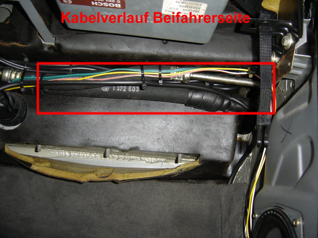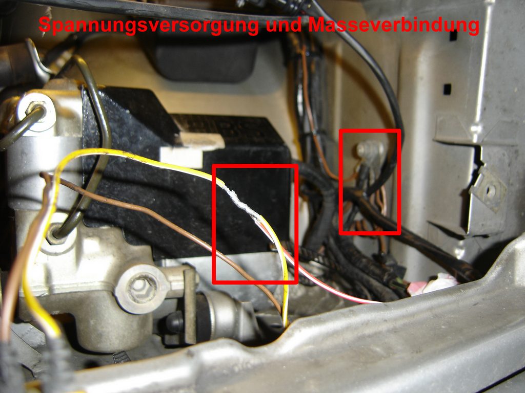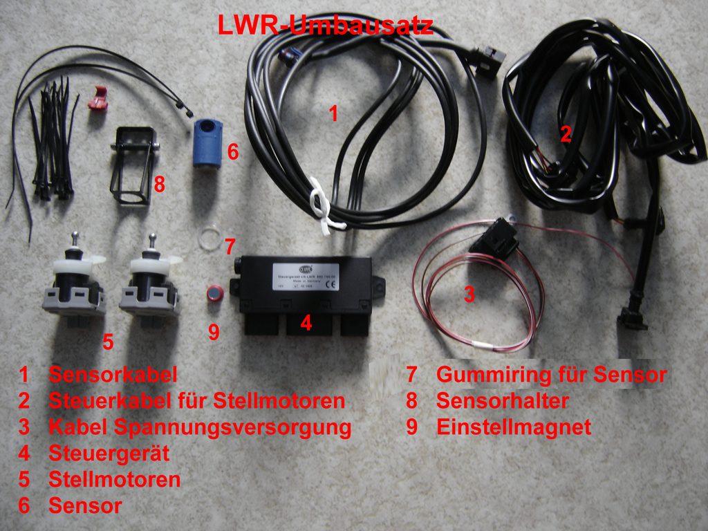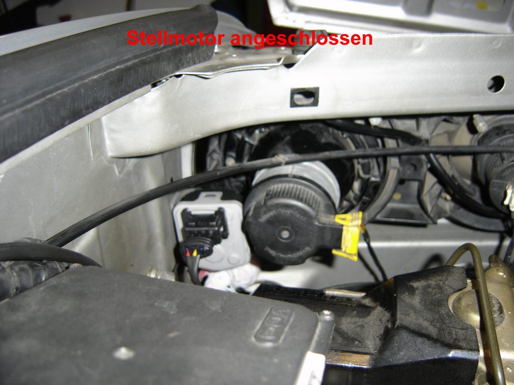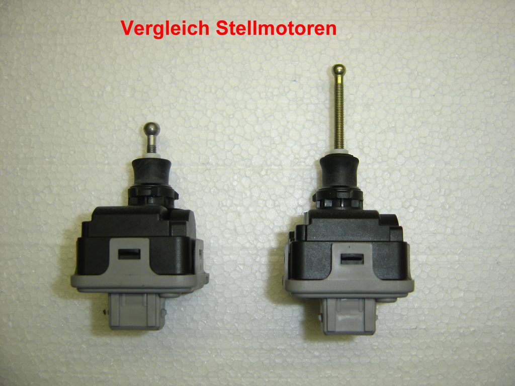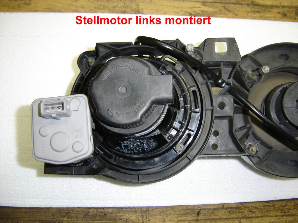 Da meine LWR schon länger defekt war und die Suche nach gebrauchen E34-Stellmotoren nicht zum Erfolg führte habe ich mich dann doch für die teure Variante entschieden, statt laufend an der hydraulischen Anlage umher zu doktern. Alles neu mit 2 Jahren Garantie. Bei BMW kosten 2 neue Stellmotoren vom E34 zusammen ca.107 €. Die HELLA-LWR kostet beim Zubehörhändler meines Vertrauens statt des Listenpreises von 212 € nur „178,78“ €. Werkzeug Bohrmaschine, Bohrer 3,5 mm und 13 mm Rundfeile, Flachfeile PH 2-Kreuzschlitzschraubendreher 8 mm-Flachschraubendreher Dorn 10 und 15 mm Ersatzteile HELLA-universal LWR 8XX 008 614-011 178,78 € (Listenpreis 212,00 €) div. Kabelbinder, Isolierband evtl. 3 Meter, 6,4 mm Schrumpfschlauch (z. B. CONRAD 531260-99) 1,19 € 2 Schrauben M 5 x 10 mit Muttern (OBI) 2 x Einstellschraube (E34) 63 12 1 378 368 3,29 € evtl. 2 x Adapter 63 12 1 385 604 2,98 € evtl. 2 x Gelenkbuchse 63 12 1 378 369 0,80 € Zu den auf dem ersten Bild zu sehenden Teilen gehört noch die Montageanleitung und die ABE. ![]() Die mitgelieferte Einbauanleitung von HELLA ist allgemein gehalten und relativ eindeutig geschrieben, bis auf das Kapitel Justierung, aber dazu später mehr. Die Kabelsätze selbst sind vorkonfektioniert und besitzen verwechslungssichere Stecker, diese brauchen eigentlich nur zusammengesteckt werden. Als erstes werden der Beifahrersitz, das Handschuhfach sowie der rechte Fondsitz oder die Sitzbank ausgebaut und es kommt die Verlegung des Sensokabels dran. Bei dem Sensorkabel handelt es ich um ein abgeschirmtes, in der Länge nicht veränderbares Kabel. Bei Beschädigung der Abschirmung können Störeinflüsse zur Fehlfunktion des Steuergerätes führen. Bei Längenveränderungen, ändert sich der elektrische Widerstand, den das Steuergerät als festen Wert mit den Sensorwerten, in seine Berechnungen einbezieht. Das Sensorkabel wird auf Grund der am ihm befindlichen unterschiedlich großen Stecker, von vorn nach hinten verlegt. Ich habe mir bei meinem M40-Motor als Montagestelle für das Steuergerät die Abdeckung hinter dem Motor ausgesucht. Die äußere Abdeckung demontieren und den kleinen Deckel unten raus ziehen. Hier ein 13mm Loch reinbohren und das Ganze auf 17 mm auffeilen. Dann wie auf dem Bild zu sehen ist, eine Aussparung mit der Flachfeile herausarbeiten. Die Aussparung muss 11 mm breit und 5 mm tief sein, sonst passt der Sensorstecker nicht durch. ![]() Von einem alten Kabelbaum habe ich eine Kabeltülle zur Abdichtung dieser Stelle verwendet. Diese Tülle vor der Montage, über den kleinen Sensorstecker, satt mit Silikon einsprühen und drüber ziehen. Dann das Kabel mit der Tülle in die Verkleidung einsetzen und so weit durch ziehen bis sich der große Stecker des Steuergeräts ca. 20 cm davor befindet. Das Sensorkabel am Kabelbaum entlang, nach rechts zur Durchführung für den Motorkabelbaum verlegen und mit ausreichend Kabelbindern fixieren. ![]() Die Kabeldurchführung vom Motorkabelbaum in den Innenraum etwas mit dem Kreuzschlitzschraubendreher weiten, mit Silikon einsprühen und die beiden Dorne zur Weitung hindurch schieben. Bevor die Tülle sich wieder zusammen zieht, den ebenfalls eingesprühten Sensorstecker hindurch schieben. An der äußeren Verkleidung das Steuergerät montieren. Dazu 2 Löcher in Abdeckung zur Befestigung mit 5,0mm, 35 mm von Unterkante bohren den Seitenabstand vom Gehäuse nehmen. Ich habe das Steuergerät statt mit den mitgelieferten Treibschrauben, mit 2, M5x10 Schrauben und Muttern befestigt. Da sich das Steuergerät direkt vor den 3 Relais der Motorelektronik befindet und diese im Betrieb ein Magnetfeld abstrahlen, welches die elektronischen Bauteile des Selben, z. B. die Justiereinheit, beeinflussen könnten, habe ich aus Alu-Folie eine Abschirmung in die Verkleidung eingeklebt. ![]() ![]() Die entfernten Abdeckungen mit Steuergerät montieren und den Stecker des Sensorkabels in die linke Buchse einstecken. Im Innenraum wird das Sensorkabel nach rechts oberhalb des Handschuhfaches am Klimaschlauch entlang verlegt. Von da aus unter dem Teppich am Schweller entlang zum rechten Fondsitz. ![]() ![]() Unter der Fondsitzbank wird das Sensorkabel durch die Tülle des rechten ABS-Sensors mit nach draußen geführt. Dazu muss man die Steckverbindung des ABS-Kabels trennen und das Kabel mit der Tülle nach draußen schieben. Die Bohrung der ABS-Kabeltülle muss analog der, in der vorderen Abdeckung ausgearbeitet und hinterher mit Lack konserviert werden. Dann das ABS-Kabel wieder in den Innenraum ziehen die Tülle mit Silikon einsprühen und weiten bis der Sensorstecker durch passt. Der Sensor für die Erkennung des Beladungszustandes wird am Unterboden, auf dem Querträger vor der Ersatzradmulde, mit den mitgelieferten Treibschrauben montiert. Wenn das Oberteil des Halters angeschraubt, ist dann den vormontierten Sensor mit dem Unterteil (Gummiring an der Sensorunterseite nicht vergessen) montieren. Auf senkrechte Ausrichtung nach unten achten. Beim herstellen der Steckverbindung des Kabels mit dem Sensor darauf achten dass die Gummidichtung vom Stecker nicht beschädigt wird und der Stecker richtig einrastet. ![]() ![]() Das Kabel wird jetzt vom Sensor ausgehend mit Kabelbindern fixiert und der Rest unter dem Fondsitz zu einer Schlaufe gelegt. Was aus dem Innenraum demontiert wurde kann wieder eingebaut werden. Für die Arbeiten im Motorraum zuerst die linke Scheinwerfereinheit und die Niere ausbauen. Der LWR-Kabelbaum wird fahrzeugspezifisch angepasst. Dazu das rot/weiße Kabel für die Spannungsversorgung sowie das braune Kabel für die Masseverbindung, um jeweils 50 cm verlängern und dann in der mittleren Buchse am Steuergerät einstecken.. Das Steuerkabel für die Stellmotoren ca. 5 cm vor Verteilung rechts/links durchtrennen und auf 110 cm hinter dem Stecker vom Steuergerät kürzen. Den Isolierschlauch entfernen und die Kabel vom mittleren und rechten Stecker mit Schrumpfschlauch überziehen. Das 
