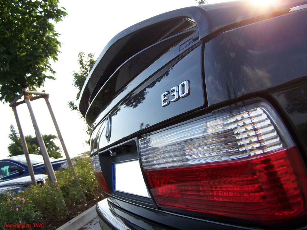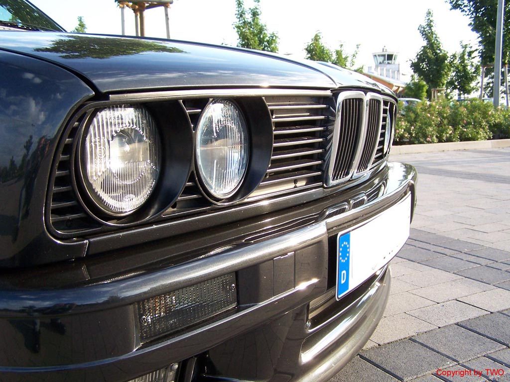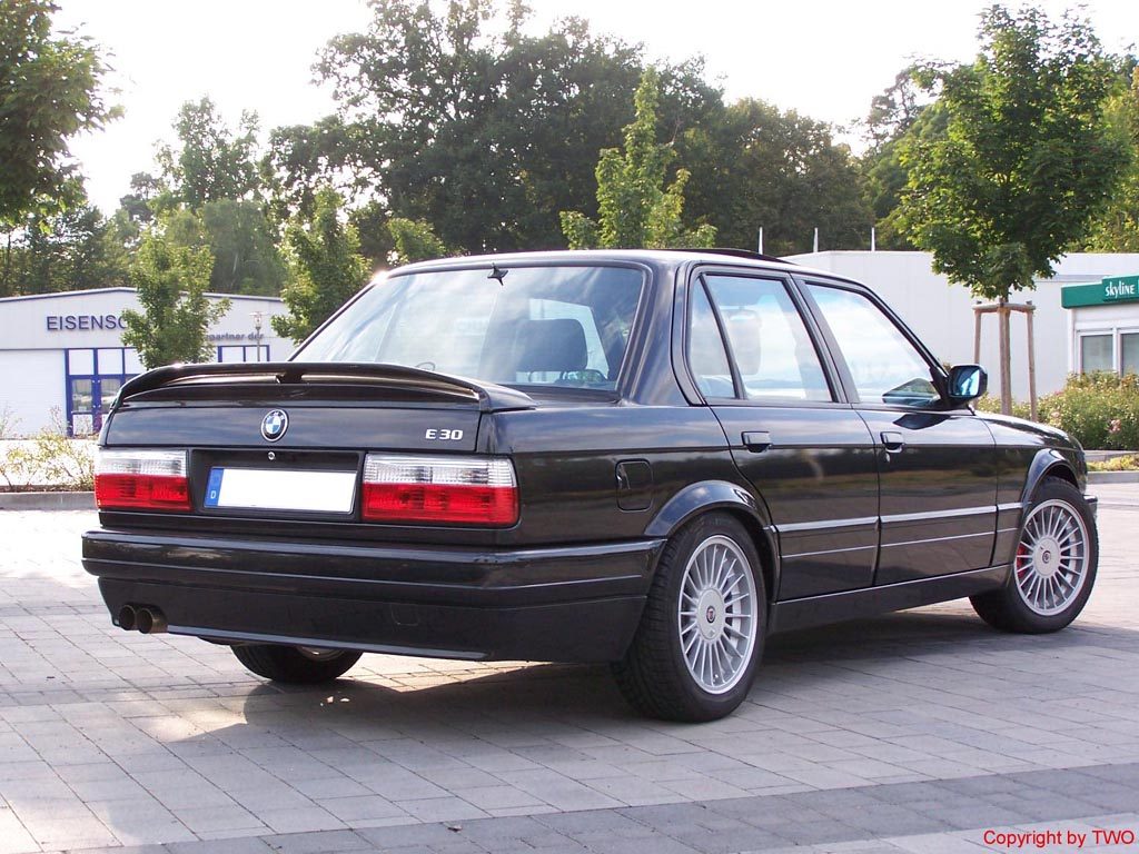 Aber es musste natürlich Ersatz her. Nach Möglichkeit wieder ein 325i E30. Doch woher nehmen und nicht stehlen, zumal ich auch noch nicht wirklich genau wusste was mir die Versicherung bezahlt. Als das dann halbwegs klar war bin ich auf die Suche gegangen und herausgekommen ist dann der Schwarze 325i M-Technik 2. Und jetzt fangen wir mit der eigentlichen Fotostory an: Wie Ihr schon anhand der Fotos erkennen könnt habe ich mittlerweile drei E 30. Fangen wir also mal mit dem Sahnestückchen an: Das ist der Schwarze 325i. Der ist Baujahr 02.90, seit 04.93 in meinem Besitz und hat jetzt original 94tkm auf dem Tacho. Es ist wie man unschwer erkennen kann ein Original M-Technik 2. Gekauft habe ich ihn wie schon erwähnt 1993 mit 19tkm im Originalzustand aus erster Hand vom BMW Händler (damals 30500.-DM). Aber wie das dann so ist, kamen im laufe der Zeit diverse Sachen dazu die da wären / sind: Schwarze DE`s von Hella, schwarze Blinker Vorn ebenfalls von Hella, zu Anfang Schwarze, dann Rote MHW Rückleuchten, jetzt Weiß/Rote Klarglasrückleuchten, ein G-Power Edelstahlauspuffendtopf mit Medium Sound und Endrohren in Brabus Optik, elektrische Fensterheber vorne nachgerüstet von In.Pro, ZV Fernbedienung von In.Pro, AC Schnitzer Sportfahrwerk (30mm tiefer), Alpina Felgen rundum 7x16 mit 205/50/16 (hinten mit Spurverbreiterung je 10mm pro Seite ), VDO Zusatzinstrumente ( Wassertemp., Öldruck und Öltemp.), Domstrebe vorn, Chromringe im Tacho, M-Style Fußmatten , M-Spiegel (sind aber momentan nicht verbaut, da es mir stinkt das jeder Corsa, Polo, Uno mit den Dingern rumfährt, da warte ich wohl besser so lange bis die wieder aus der Mode gekommen sind), den obligatorischen M Schaltknauf komplett und beleuchtet, Umrüstung auf Euro 2 von GAT Kat und noch viele andere Sachen. Vielleicht interessant, alle Teile die nachgerüstet wurden waren Neuteile!! Auch von der E 30 Seite habe ich mir ein paar nützlichen Tips aus dem DIY geholt!! Eine Werkstatt sieht er eigentlich nur in absoluten Ausnahmefällen wenn mir das benötigte Werkzeug fehlt. Ansonsten wird alles selbst gemacht. Der Wagen ist in einem absoluten Bestzustand was mit Sicherheit auch daran liegt das er schon seit 1996 nur noch im Sommer bei schönem Wetter bewegt wird, so gut wie nie Regen sieht und seit 11.2002 auch ein Saisonkennzeichen trägt. Ich habe mir in den Kopf gesetzt es bis zu einem H-Kennzeichen zu schaffen.! Ich hoffe doch das daß klappt. Viele halten mich deswegen auch für verrückt, aber was solls. Jeder hat halt so sein Hobby.