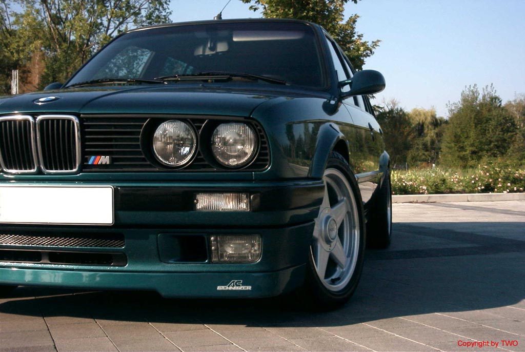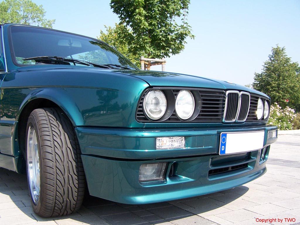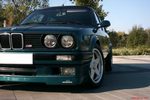 Und wie das dann so ist, kam ich Anfang 2002 auf die Idee mir noch einen E30 Touring zuzulegen. Die einzige Bedingung die ich mir selber gestellt habe war das es ein 6 Zylinder sein sollte und er auch ein bißchen Ausstattung habe soll. Also bin ich auf die Suche gegangen. Geholfen hat mir da dann auch schon mein Wissen was ich mir im laufe der Zeit bezüglich des E 30 zugelegt habe, denn wirklich gute Tourings gibt es eigentlich nicht mehr viele. Das erste Objekt was ich mir angeschaut habe war nämlich so eine total verbastelte Kiste. Von außen hui und innen pfui!! Der ist es dann auch nicht geworden, sondern der Grüne hier. Gefunden bei Mobile.de. Deshalb erst mal den Zustand wie ich ihn gekauft habe: 325i Touring, Bj.: 12.90, Lagunengrün, 188tkm, Klima, Leder, Sitzheizung, 4 elFh, neuen Zylinderkopf bei ca. 100tkm (mit Rechnung von BMW) und äußerlich in einem eher schlechten Zustand: Steinschläge ohne Ende, Delle in der Fahrertür unterhalb der Zierleiste, Bremse runter, Scheinwerfer von Steinen zerschossen, Reifen total abgefahren, Auspufftopf na ja!!, und innen sah er auch etwas unglücklich aus. Aber der eigentliche technische Zustand war gut. Motor, Getriebe, HA Getriebe, Radlager soweit alles o.k.! Also den Verkäufer um 1000 Euro gedrückt und gekauft!! Und dann habe ich ihn erst mal zerrissen und angefangen alles zu erneuern was es zu erneuern galt!! Von A wie ATF Öl über Bremsen komplett, Scheinwerfer (auch NebliŽs) , komplette große Inspektion mit allem, Lenkrad, auch auf Euro 2 umgerüstet, wieder komplettes neues Schnitzer Fahrwerk, Domstrebe vorn, neuen Lack (machen lassen) für Motorhaube/Frontblech/ IS-Lippe und Delle an der Tür + M-Spiegel , diverse neue Dichtungen, die Frontscheibe, die ehemaligen BBS Kreuzspeichenfelgen von Schwarzen bis Z wie Zahnriemen!! Innenraum total ausgeräumt, gesäubert, Ledersitze gereinigt und neu geschwärzt, Sitzheizungsmatte vom Fahrersitz erneuern lassen weil durchgebrannt, auch VDO Zusatzinstrumente rein, Chromringe im Tacho, Scheiben ab Türen hinten mit Folie beziehen lassen und natürlich den restlichen Lack durch Kampfpolieren aufgearbeitet.. Dann noch graue Streugläser für die Blinker Vorn und Schwarze MHW Rückleuchten hinten rein. Lediglich die Tonnenlager habe ich dann bei BMW machen lassen (wie jeder weiß Scheißarbeit). Weil alles andere mache ich auch hier selbst. Viele Teile die ich in den Grünen gebaut habe, habe ich aus meinem Schwarzen ausgebaut und bei ihm dann durch Neuteile ersetzt. Wie z.B. die kompletten Lampen, das Lenkrad und noch ein paar andere Sachen. Also alles im allem war es ein Haufen Arbeit die sich auch über fast 6 Wochen hingezogen hat. Als dann alles soweit fertig war habe ich ihn wieder zugelassen, auch mit Saisonkennzeichen, und noch frisch Tüv machen lassen und so steht / fahrt er nun durch die Gegend. Er hat zwar immernoch ein paar Kratzer rundum, aber ich denke mir das man ihm sein Alter und auch die Laufleistung ruhig ein bißchen ansehen darf! Im großen und ganzen ist es ein schmuckes Wägelchen geworden!! Ich hoffe das kommt auf den Bildern ein bißchen rüber!! Ich habe zwar auch jede Menge Bilder bei dem Wiederaufbau gemacht, aber das würde hier den Rahmen sprengen. Mittlerweile habe ich dann auch noch die Kupplung und Pleuellager ersetzt und ihn mit AZEV Typ A Alufelgen in 7.5x16, die ich Nagelneu für einen Hammerpreis habe schießen können, und 205/50/16er Reifen ausgestattet.