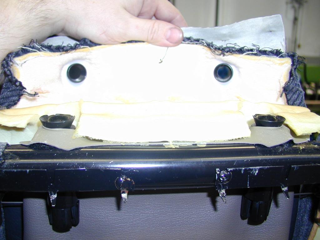 unter den Bezugsstoff bringen, denn der ist fest verbunden mit einer