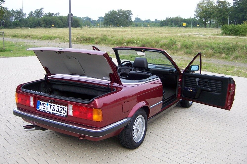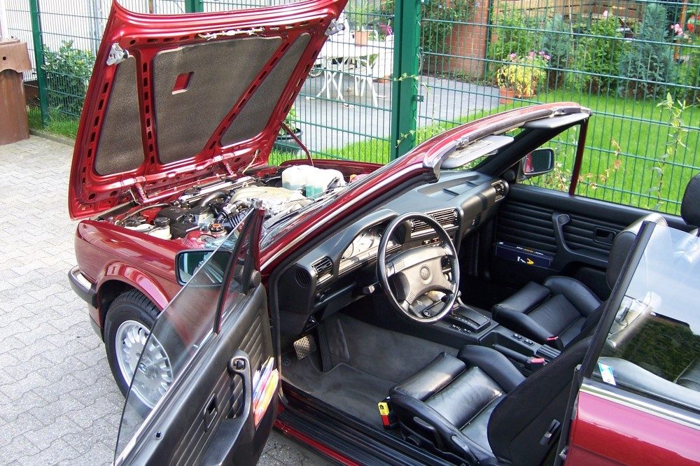 Hallo liebe Fans der „klassischen“ BMW’s, in einigen Fotostorys habe ich hier bereits meine bisherigen BMW’s vorgestellt. Eigentlich war ich mit meinen lagunengrünen 318i Cabrio und dem kürzlich hier noch einmal vorgestellten 83er 320iA sehr zufrieden, aber trotzdem sah ich mich immer wieder nach einem schönen VFL Cabrio mit Automatik um, welches diese beiden ersetzen könnte. Es ist doch sehr zeitaufwendig zwei Fahrzeuge neben den Alltagsautos in gutem Zustand zu halten und vom Geld wollen wir hier lieber erst gar nicht erst sprechen. So wurde ich im Forum des BMW 3er Clubs (www.3er-club.de) auf einen Eintrag aufmerksam, in dem ein User von einem 325i Cabrio in einer Mannheimer Tageszeitung berichtete. Kurze Zeit später besichtigten gleich zwei User diesen BMW für mich, denn nach den diversen Reinfällen bei Besichtigungen wollte ich die insgesamt fast 600 km nicht umsonst fahren. Da sich das Cabrio wohl noch in gut brauchbarem Originalzustand befand, fuhr ich wenige Tage später los um das Auto zu kaufen. Nach einer Probefahrt einigte ich mich mit dem Verkäufer und so habe ich jetzt das schon sehr lange gesuchte 325i Cabrio mit Automatik im Originalzustand. Mein 318i Cabrio konnte ich zum Glück in gute Hände verkaufen und auch mein „Oldi“ fand ein neues liebevolles Zuhause. Auch wenn seit dem Kauf des Cabrios leider der Traumsommer vorbei zu sein scheint hat der 325i mir schon viel Spaß gemacht. Ist schon etwas ganz anderes als der Vierzylinder, aber trotzdem habe ich mich auch mit diesem nie untermotorisiert gefühlt. Bis der 325er in einem so guten Zustand ist wie mein 318i war wird es wohl noch etwas dauern aber insgesamt kann ich wohl ganz zufrieden sein. Mittlerweile hat der Sechszylinder bereits die Euro 2 Umrüstung, neue Tonnenlager, neue Bereifung und frisch überarbeitete Felgen (ja die 14 Zoll Felgen soll der Wagen behalten), komplett neue Flüssigkeiten, usw. In den nächsten Wochen gibt es noch ein neues Verdeck und eine Hohlraumversiegelung. Die Steinschläge und die anderen kleinen Kratzer werden wohl erst im nächsten Jahr behandelt. So jetzt zu den Daten meiner Neuerwerbung: 325i Cabrio Automatik - Produktionsdatum: 24.07.1990 (wohl wirklich eines der letzten Chrommodelle) - Calypsorot metallic - Leder schwarz - Sitzheizung - Airbag-Lederlenkrad (nicht schön aber sicher) - beh. Scheibenwaschdüsen - Schweinwerfer Waschanlage - kleiner BC (Außentemperaturanzeige) - stärkere Stromversorgung - elektr. Antenne - Cassettenhalterung - BMW Soundsystem - BMW Diebstahlwarnanlage (dezentes Zusatzschloß an der Tür und LED am Heck ) - Hardtop-Vorbereitung ABS, elektr. Fenster, Nebellampen, Check Control… gehören beim 325i ja eh zur Serienausstattung. Nicht original ab Werk sind die Gemini Funkfernbedienung mit Wegfahrsperre, das von mir nachgerüstete BMW Radio Cassette BUSINESS RDS mit BMW Changer A im Kofferraum am original Soundsystem, der Feuerlöscher und die Kofferaumdeckel-Innenverkleidung. So das war es jetzt erstmal. Viele Grüße Thomas (thomas.schmalohr@3er-club.de)