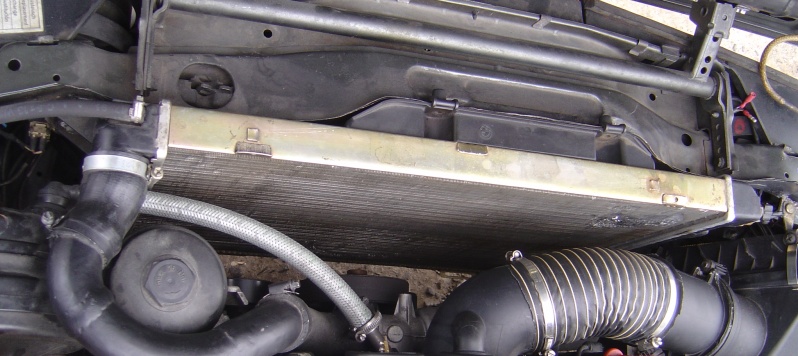 Ein gut passender Kühler für Umbauten im VFL E30 ist der Kühler des E28 535i. Hier passt die untere und die obere Aufnahme ohne Änderungen. Ein starre Rohrbogen vom linken Anschluss zum Termostat ist nötig um diesen Knick sauber zu ermöglichen. ![]() Der Ausgleichsbehälter des V8 Spenderfahrzeugs kann weiter verwendet werden und wird stabil an der E30 Spritzwand befestigt. ![]() |