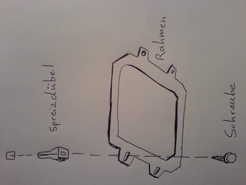 zuerst die unteren Schrauben befestigen, da die Löcher im Rahmen
