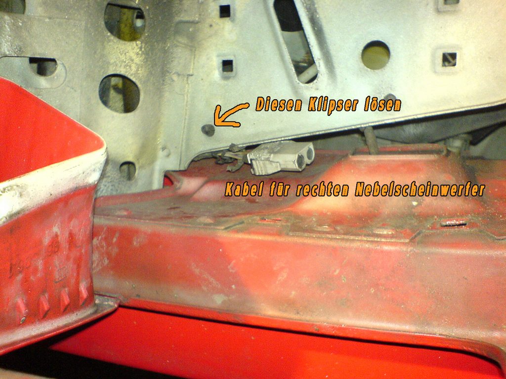 liegenden Bleche geklipst. Beim rechten Nebler ist das Kabel direkt