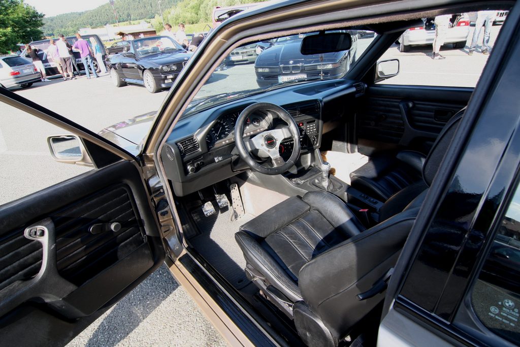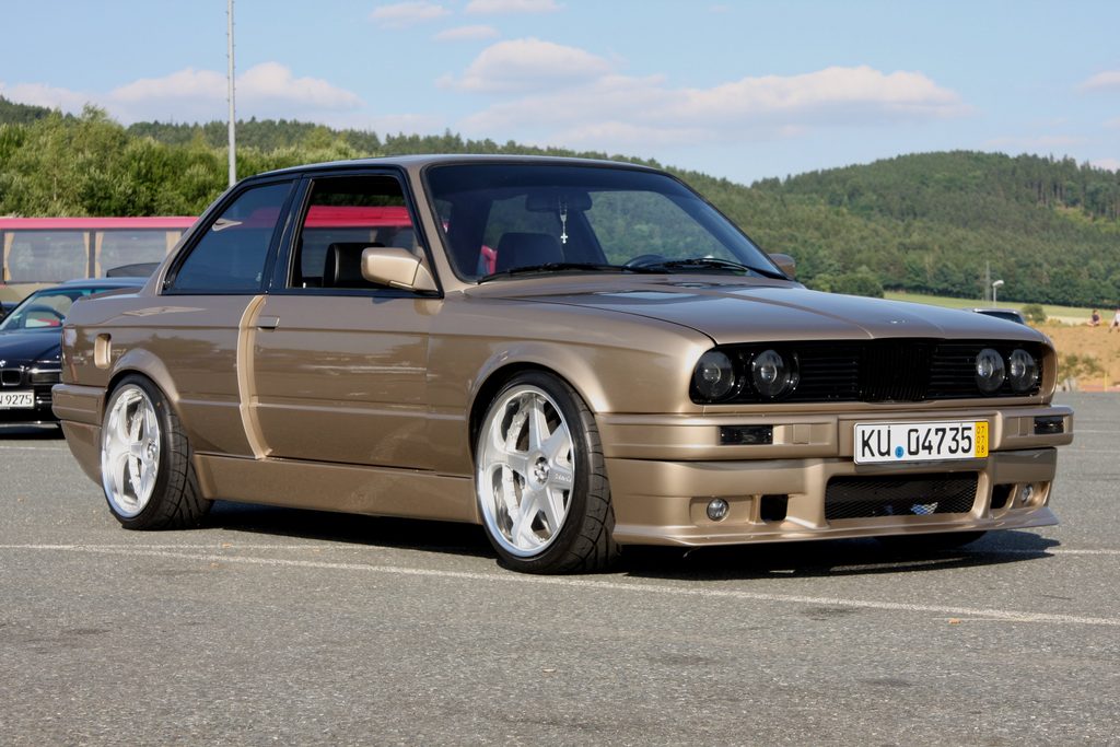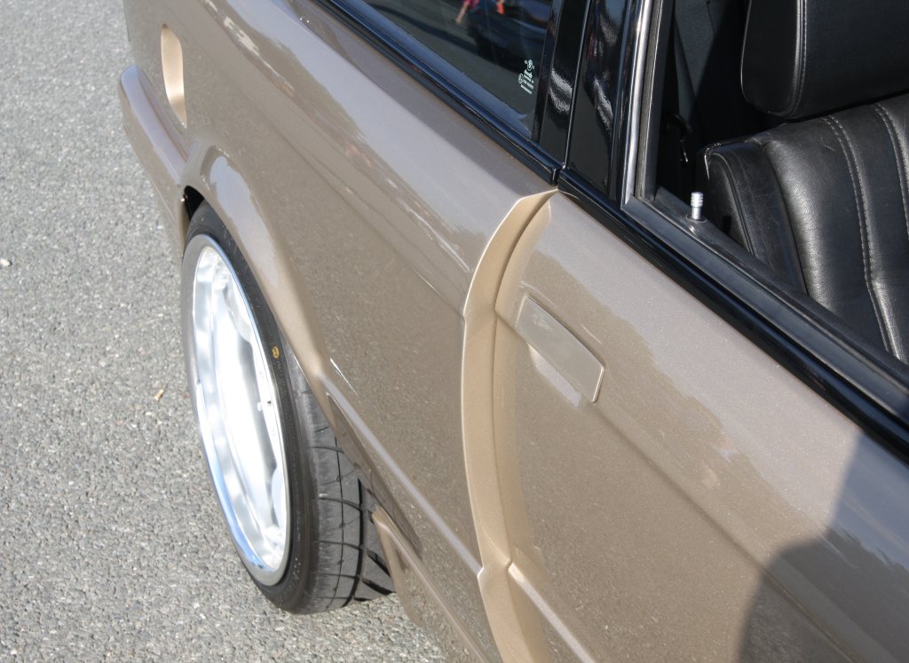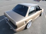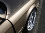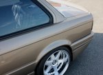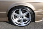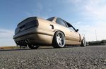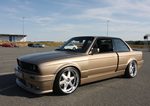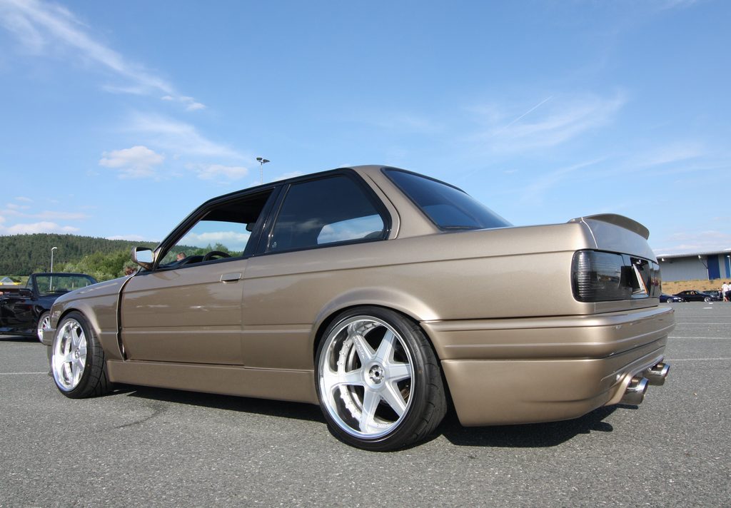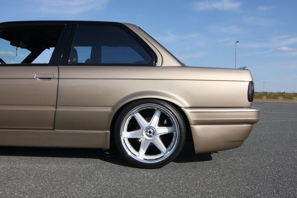 Hallo BMW Fans, ich möchte Euch meine neustes Projekt vorstellen. Auf der Suche nach mehr Platz für meine Felgen ging ich etwas andere Wege. Die Kotflügel vorn und die Seitenteile hinten sind einige Zentimeter weiter aussen eingeschweisst. Dementsprechend musste Stoßstangen wachsen, Rückleuchten nach aussen wandern, Schweller verbreitert werden uvm. In Bayreuth auf dem Treffen konnte ich den Wagen erstmalig vorstellen, wenngleich noch nicht alles fertig gebaut ist. ![]() Ursprünglich war es ein 318is Bj.90. Eigentlich sollten nur ein paar schöne Felgen montiert und die Serienfarbe (alpinweiss) erneuert werden. Die Felgen waren eine zu gross gewählte Sonderanfertigung in 9.5 x18 ET 8 vorne, ET -38 hinten mit 225/40 18. Um ihnen Platz zu verschaffen sollte ein neuartiger Karosserieumbau ausprobiert werden. Nach einem Versuchsobjekt wurden die hinteren Seitenteile um 5cm, die Kotflügel um 3cm nach aussen und das Innenradhaus 8cm nach oben versetzt. So können Die Räder auch bei voller Beladung und ohne Federwegsbegrenzer sauber abtauchen. Stosstangen bilden sich aus verbreiterten M-technic II Teilen mit einem E36 M3 Unterbau an der Front, einem E46 M3 Unterbau am Heck und 4 M-technic II Seitenschwellern. Die nach aussen versetzten Eigenbau DE-Scheinwerfer sind zusätzlich 4.5cm ins Fahrzeuginnere gewandert. Es folgten weitere dezente Karosserieveränderungen wie die aus Originalteilen gestalteten verkleinerten Aussenspiegel, integrierte Abrisskante am Heck uvm. Im Motorraum sitzt ein leicht modifizierter 2.5er m52 24V mit Vanos und Eigenbau Auspuff der in Verbindung mit einem 3.25 Sperrdiff für ordentlich Vortrieb sorgt. Verzögert wird (dank Tino) mit 312mm Scheiben und 540ier Sätteln. Das Fahrzeug macht nach diversen achsgeometrischer Veränderungen und schliesslich H&R Fahrwerk einen sehr soliden, sauberen und präzisen Fahreindruck. Zum Schluss möchte ich mich nochmal bei meinen Helfern des aufwändigen Umbaus (hofi,bex,viti,boots,tobi) bedanken und sagen: Egal wie schwierig etwas erscheint: Es