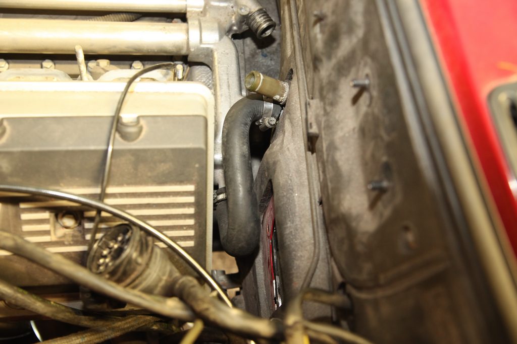 Kühlwasserschläuche Heizung Bei abgenommener Ansaugbrücke sollte man die Heizungsschläuche verlegen, danach geht das quasi nicht mehr. Der Ausgleichsbehälter kann ohne Probleme an die Abeckung des Gebläses verschraubt werden. Der untere Anschluss der Heizung (Hinlauf) kann recht einfach an den linken Anschluss (Ausgang Zylinderkopf) angeschlossen werden. Der Rücklauf mit Anschluss an die Heizung (oben) und Ausgleichsbehälter ist schon etwas kompliziert. Die Schlauchverläufe mit zwei 90 Grad Kupferbögen sind vielleicht noch etwas abenteuerlich. Wenn ich was schöneres finde werde ichs nochmal ändern, aber der Sommer steht vor der Tür, das Teil soll endlich mal fahren ...