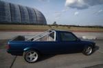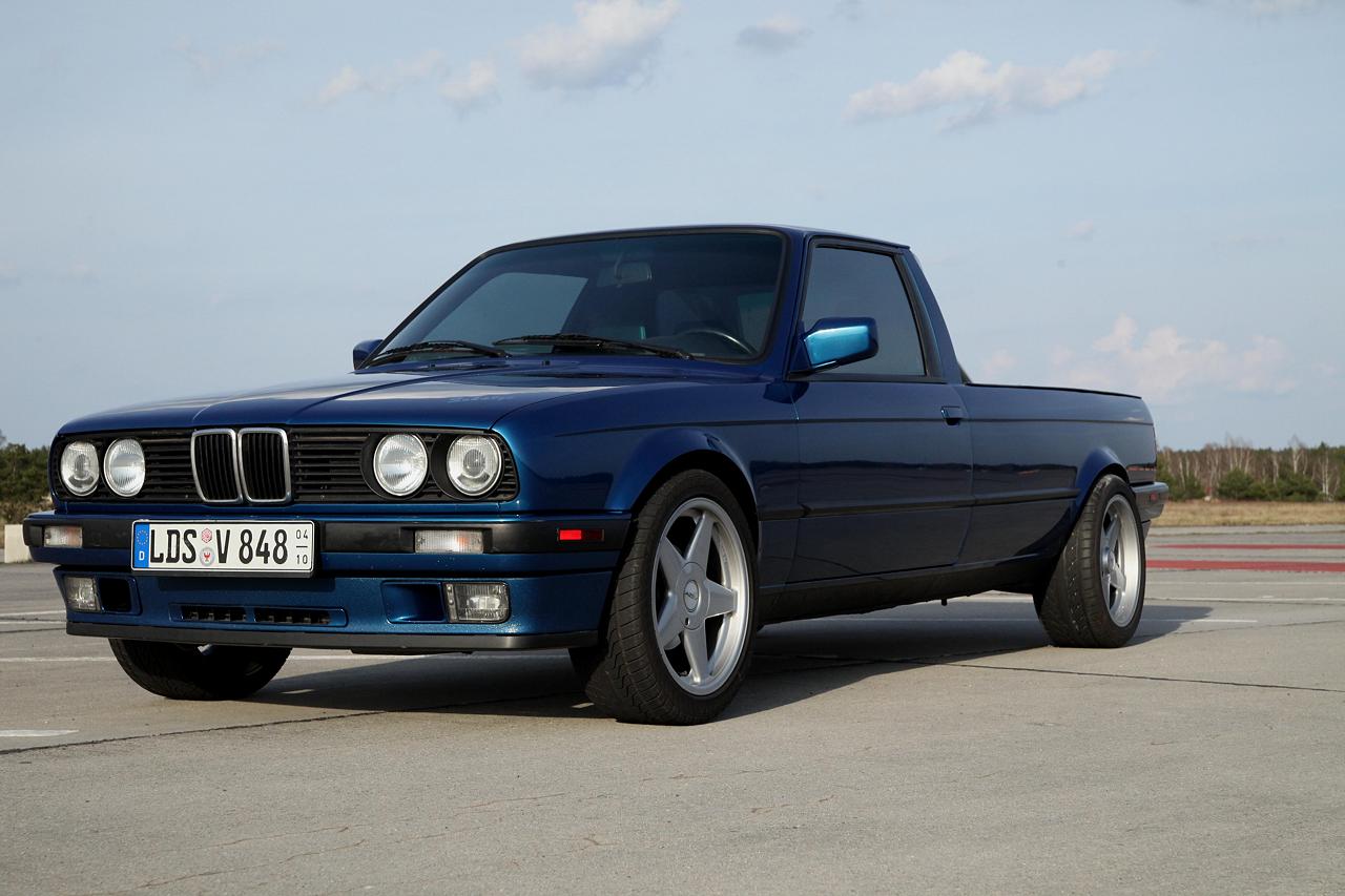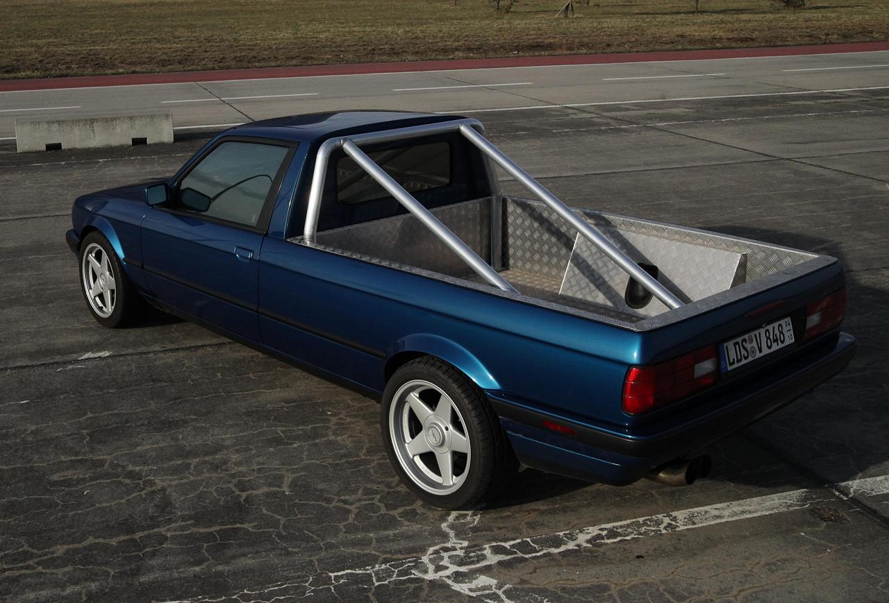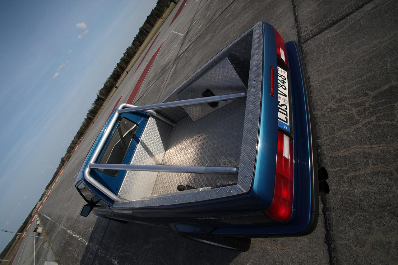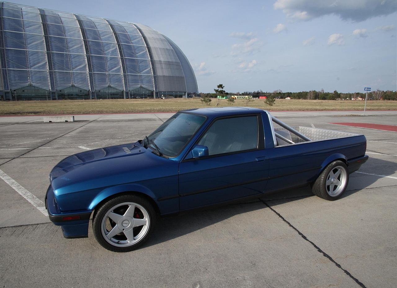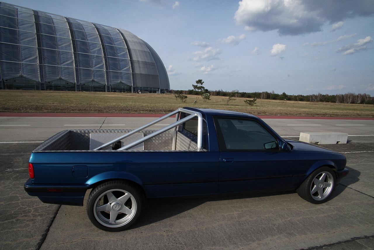 Hallo BMW E30 Freunde, bekanntlich haben ja alle E30 Karrosserieformen (Cabrio, Touring, Zweitürer, Viertürer) einen identischen Radstand. Ein Pickup Umbau sieht daher immer irgendwie zu kurz aus. Vor kurzem wurde dieser um 47cm verlängerte E30 Pickup bei mobile.de angeboten. Der Umbau ist sehr konsequent auf eine gefällige Optik ausgerichtet. Auf praktische aber eher unschöne Dinge wie beispielsweise eine Heckklappe wurde bewußt verzichtet. Der Wagen ist aus zwei E30 zusammengesetzt worden. Die Kardanwelle wurde verlängert und neu gewuchtet. Der Kabelbaum wurde verlängert, ein Handbremsseil musste in Eigenleistung hergestellt werden. Ab der B-Säule wurde die Karosse mittel eines gut durchdachten Gitterrohrrahmen stabilisiert. Lohn der Mühe ist eine sehr gute Steifigkeit ungefähr auf Limo Nivaeu. Auch auf schlechten Straßen klappert nichts, der Aufbau ist wesentlich stabiler als beispielweise bei einem E30 Cabrio. Motortechnisch ist derzeit ein neu aufgebauter 325i Motor verbaut. Dieser arbeitet etwas zäh, mit den recht großen Rädern, dem gestiegenen Gesamtgewicht, sowie der mittelmäßigen Aerodynamik hat er ordentlich zu tun. Sicherlich nicht die idealste Motorisierung für die nächsten Jahre. Was hier aus meiner Sicht reingehört werdet Ihr Euch sicherlich denken können. Der Radsatz ist vom Typ AZEV A, vorn 7,5x17 mit 215/45 und 8,5x17 ET 13 mit 245/40, reifentechnisch also vorn wie hinten eigentlich eine Nummer zu groß, quasi E36 Niveau. Das ganze passt aber recht gut zu den (leider) stark modifizierten Radläufen. Fahrwerkstechnischen waren vorn 60mm WEITEC Federn verbaut, die ich sofort wieder gegen die E30 Serienfedern getauscht habe, weil mit den 60mm Federn keinerlei Alltagsqualitäten vorhanden waren. Hinten sind Touring Federn samt früh einsetzenden Begrenzern verbaut. Wird sich zeigen wie das in der Praxis funktioniert, wenn eine gewisse Beladung vorhanden ist. Diese Fotos zeigen bis auf kleiner Änderungen den Kaufzustand. Einige Umbauten schreien förmlich nach Umsetzung. Der E28 Kühler samt E Lüfter vom Vorbesitzer wird sich auch mit dem Zielmotor gut machen. Die offenen Räder brauchen noch eine ordentliche bremsentechnische Ausfüllung. Vermutlich das 312/294er System, die zunächst geplante 300x24 Anlage sieht unter den großen Sternen doch etwas verloren aus und benötigt zudem noch 10mm Distanzscheiben. Der Auspuff wird noch jetzt noch kurzfristig geändert, ist etwas zu laut abgestimmt. Auf der Ladefläche wird es wohl im Bereich der Reserveradmulde noch eine Klappe geben. Dort wird dann die Batterie und Kleinzeugs platziert. Eine weitere Klappe im Bereich der Rückleuchten wird derzeit noch diskutiert. Verzurrösen rundum sind ebenfalls geplant, zum Rumstehen habe ich diesen Wagen nicht gekauft :-) Ein nettes Hightlight ist die elektrisch absenkbare Heckscheibe. Weiterhin ist auch die Klappfunktion des Schiebdachs noch funktionsfähig. Hinter den Vordersitzen gibt es unten großzügigen Stauraum. Mein Dank gilt dem Herrn Kröger, der diesen Wagen in wirklich herausragender Qualität umbaute. Nach 10 Jahren trotz bretthartem 60mm Fahrwerk sind keinerlich Risse oder ähnliches am Aufbau erkennbar. Die Seitenteile sind völlig wellenfrei. Die Radläufe sind zwar Geschmacksache, aber sehr stabil und sauber umgebaut. Am Wagen gibt es keinerlei Rost, die neu eingesetzten Bleche (Unterboden) schliessen so sauber ab, das es auf den ersten Blick überhaupt nicht auffällt, das hier was anders ist. Alle Fahrwerksteile sind rot gepulvert, alle Gummis wie neu. Dementsprechend liegt der Wagen wie ein Brett auf der Straße, der lange Radstand fällt nicht negativ, eher positiv auf. Der Wagen ist zwar noch nicht fertig, dennoch wollte ich den Euch nicht vorenthalten. Bei meinem Kumpels stieß der Neuerwerb auf reges Interesse. Es werden nun schon ähnliche Projekte diskutiert. Eigentlich müsste der Wagen konsequenterweise noch einen halben Meter länger sei. Also 70cm vorn dem Hinterrad und 30mm hinter dem Hinterrad verlängert werden. Breiter darfs hinten auch gern sein, mal sehen ob aus diesen Plänen was wird. 3 Stück NFL E30 sollte man dafür schon mal als Blechspender besorgen. mfg Tino tino@e30.de |