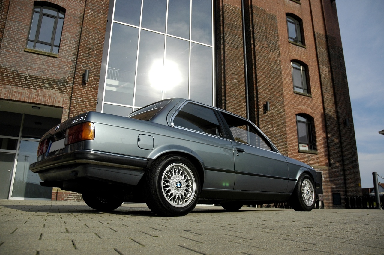 Hallo E30 Freunde, Ich möchte euch meinen 1987er E30 VFL vorstellen. Vor ziemlich genau zwei Jahren wollte ich mir selbst ein spätes Geschenk zum abgeschlossenen Studium machen und machte mich auf die Suche nach etwas Fahrspaßintensivem mit Heckantrieb zum Quertreiben. Da das Studium noch kraterartige Spuren auf dem Konto hinterlassen hat und die Wohlstandsrente leider noch in nebliger Ferne liegt, war das Budget überschaubar bis minimal. Die Wahl viel auf einen E30. Die Dinger hat man als 15 Jähriger schon cool gefunden, also her damit. Stolze 1500€ lagen bereit. Selbstverständlich mußte es ein 325i sein und natürlich die 2 türige Version (klar bei dem Budget! ;-)) Nach ganzen zwei Tagen (!!) Suche stand dann dieser cirrusblaue Vorfacelifter bei mobile.de drin. Natürlich die fast schon üblichen 200.000km auf dem Wecker, angeblich zweite Hand und in gutem Zustand mit King Alpina Imitaten. Fesch!! Also hin und angucken. Der gute Herr hatte den Wagen wegen des fehlenden Schiebedachs für den Nordschleifeneinsatz vorgesehen. Da er aber schon zwei oder drei andere Fuhren in der Mache hatte, sollte der 325er wieder weg. ![]() Der Zustand war nicht doll.... mies trifft´s besser. Der Lack total verwittert, die hinteren Radläufe ziemlich bröselig, der Motor lief wie ein Sack Nüsse und der Innenraum verdiente den Ausdruck verwohnt. Nikotin hatte sämtliche elektrischen Verbindungen ihrer Zuverlässigkeit beraubt, der Fahrersitz und Teppich sahen aus als hätte Garfield auf Speed ein Aggressionsbewältigungstraining absolviert. Alle vier Reifen alt und runter, TüV war schon eine Zeit kein Thema mehr und die Felgen zeigten sich im Schrottzustand. Kurzum... absolut nix tolles. 2000 Euronen waren aufgerufen. 1500€ in der Tasche. Meine "Vier-Augen-sehen-mehr-als-zwei"-Begleitung hatte seine Meinung klar geäußert und nachdrücklich zu sofortiger Abreise geraten, ich selbst hatte mir auch viel mehr erhofft und war ziemlich enttäuscht von den was da so vor sich hin muffte. Also was tut der preisbewußte und vernünftige E30 Liebhaber?? Richtig!! Kaufen! Die gesammelten Argumente bezüglich des exquisiten Zustandes halfen, meine Finanzen mit dem Anspruchsdenken des Inhaber in Einklang zu bringen. Den Stapel Papierchen gegen den BMW getauscht und ab nach Hause. Um an dieser Stellen meinen Geisteszustand etwas zu verteidigen, es gab auch positive Argumente. Die Laufleistung war anhand von aus hygienischer Sicht bedenklichen Serviceheften nachweisbar, die Historie gefiel mir gut. Opa hatte den Wagen von BMW gekauft, der Sohn hat ihn übernommen und am Ende durfte der Enkel ran. Rost war kein sehr großes Thema und geschweißt wurde bis dahin nichts.