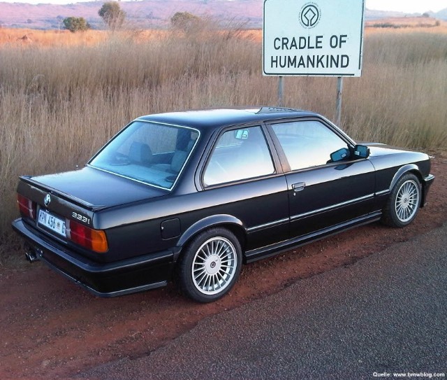 Eine in Deutschland fast unbekannte Motorisierung des E30 ist der 333i. In den Jahren 1985 und 1986 wurden nur rund 200 Stück der (hubraumtechnisch gesehen) Spitzenmotorisierung des E30 von BMW Südafrika in Zusammenarbeit mit der BMW Motorsport GmbH und ALPINA produziert. Hergestellt wurde er im Werk Rosslyn in Pretoria. Er kostete im Jahr 1985 in der Grundausstattung 41.300 ZAR (Südafrikanische Rand) was damals ungefähr dem gleichen Wert in DM entsprach. ![]() Der 333i hat einen 3,2 Liter M30 Motor installiert. Dieser Motor stammt aus dem E23 732i und leistet wie dort unverändert 197 PS und hat ein Drehmoment von 285Nm. Die Beschleunigung auf 100kmh liegt bei 7,3 Sekunden, die Vmax bei 231kmh. Interessant auch das Leergewicht von 1256 kg, welches damit um 45kg höher als bei einem 325i des gleichen Baujahrs liegt. ![]() Bleiben wir beim Motor. Um keine neuen Entwicklungen starten zu müssen, wurde bei den umbauspezifischen Teilen auf ALPINA B6 Komponenten zurückgegriffen. Motorhalter, Wasserkühler, Ansaugbrücke und Luftfilterkasten sind die augenscheinlichsten B6 Teile im 333i. Weiterhin ist ein ALPINA Fächerkrümmer und eine komplette katlose ALPINA Abgasanlage verbaut. Wie stark die ALPINA Teile die Nennleistung erhöhen, darüber kann man streiten. Eine gute Ausgangsbasis für weiteres Tuning am Motor stellen die Teile auf jeden Fall dar. Ein gesperrtes 2,93er Diff zusammen mit dem kurz übersetzten 5-Gang Sportgetriebe sorgt für Fahrspass. Der 20 Liter ALPINA Zusatztank aus Alu erhöht die Reichweite, verkleinert aber auch den Kofferraum. ![]() Im Innenraum ist ein ALPINA Cockpit mit den Zusatzinstrumenten in der Lüftung verbaut. M-Technic I Lenkrad und Schaltknauf runden das Bild ab. Weiterhin kann sich der 333i Fahrer auf BMW Sportsitze und ein Bilstein Sportfahrwerk (identisch B6) freuen. Es ist eine B6 Bremse vorn mit den bekannten 296x25mm Scheiben verbaut. Äußerlich ist es aber kein ALPINA, sondern eher ein M-Technic Fahrzeug geworden. Die ALPINA 7x16 Felgen (mit BMW Emblem) einmal ausgenommen, befindet sich das komplette M-Technic I Programm an der Karosse. ![]() Ein interessantes Detail ist der in den M-Farben hinterlegte "333i" Schriftzug am Heckdeckel. Eine Quelle für den entsprechenden Basisaufkleber kann bei mir erfragt werden: tino@e30.de Vielfach wird berichtet, dass Servolenkung und Klimaanlage nicht zusammen bestellt werden konnte. Fehlender Platz vorn am Riemenrad wird dafür als Grund genannt. Elektrische Fensterheber waren Serie. ABS war eine Sonderausstattung. In manchen Test wird von einer hydraulischen Bremskraftverstärkung berichtet, die Bilder beweisen das Gegenteil. Alle 333i sind Rechtslenker, was einen Import eigentlich eher uninteressant macht. Es gab nur 4 Farben: hennarot, diamantschwarz, alpinweiss und arktissilber. Es gab keine Viertürer 333i.