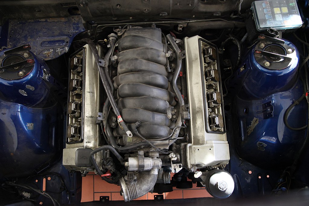 Motor wurde von oben in den Motorraum gehoben. Das Getriebe dann von