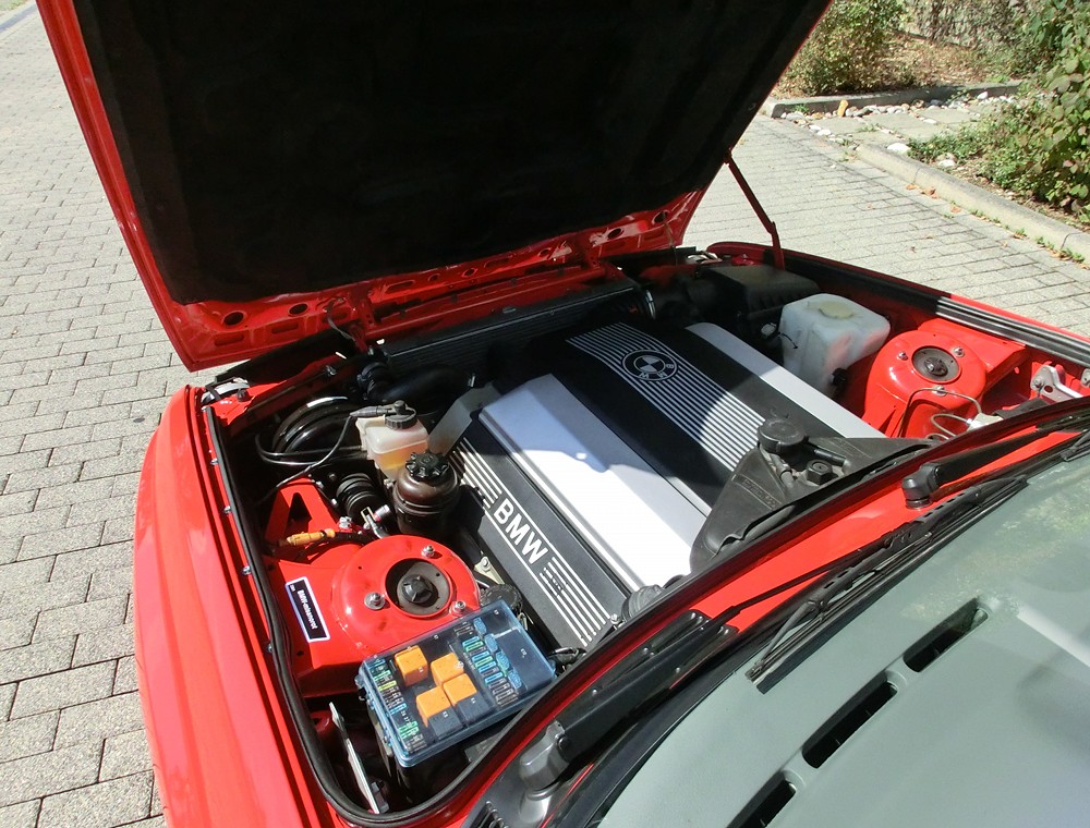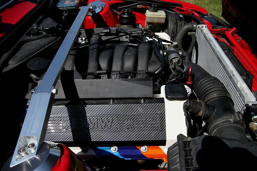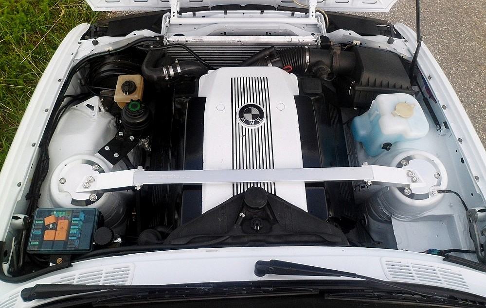 Mit in Wagenfarbe lackierter Motorabdeckung und einem absolut sauberen Motorrraum stellt Carsten zu diesem Thema meine persönliche Referenz dar: ![]() Um da einigermaßen aufzuschliessen habe ich bei meinem Cabrio die Ventildeckelhauben in Carbonoptik bekleben lassen, sowie die Ventildeckel in M3 E30 EVO Optik lackieren lassen, also weiss mit M Streifen. Für eine klassischere Optik habe ich die Motorabdeckung weggelassen. ![]() ![]() Die Motorabdeckung macht auch in weiss eine gute Figur, bevorzugt natürlich bei einem weissen Fahrzeug: ![]() Hier schön zu sehen der M3 E30 Ausgleichsbehälter samt Kabelkanal. Interessante Perspektive, da bei demontierter Motorhaube fotografiert. ![]() Der ganze Spaß passt natürlich auch in eine M3 Karosse. ![]() |