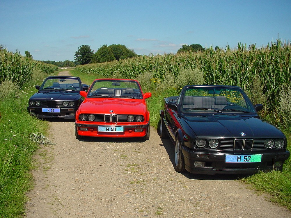 Hallo Freunde, hier zum Sommerausklang noch ein paar Fotos meiner drei E30 Cabrios. Lange hat es gedauert, aber nun möchte ich Euch endlich drei verschiedene Motorumbauten M52, M57 und M60 präsentieren. ![]() ![]() ![]() M60 Umbau Basis 320 i Cabrio Bj 1990 135000 km Brilliantrot Motor 4,0 M60 Kilometerstand 250000 - Langstrecke, kein Klappern, kein Ölverbrauch Diff 2.93 vom 525tds Bremse von 300mm.de Fahrwerk H&R Felgen Lenso 7,5 x 17 und 8,5 x 17 Kardanwelle 328i E36 Kats vom 740i und Endtopf vom E36 M3 ![]() M57 Umbau Basis 325i Cabrio EZ: 9/1991 macao-blaumetallic Spender 330d E46 Motor 220PS, 500NM Drehmoment Orig. 330d Auspuffanlage Orig. 5 Gang Schaltgetriebe Kardanwelle angefertigt Differential 2.65 Bremse orig. 325i Fahrwerk H&R Felgen Lenso 7x16 Beschleunigung von 0-100 Km/h: 7,0 Sek. Durchschnittsverbrauch ca. 6,8 Liter Euro 3 eingetragen ![]() M52 Umbau Basis 318i Cabrio EZ : 02.91 Diamantschwarzmet Spender 328i Touring aus 96 Kat und Endtopf vom M3 E36 AP - Fahrwerk Bremse original 15" Kreuzspeiche E- Verdeck Euro 2 Fahrzeug steht zum Verkauf Alle drei Fahrzeuge sind mit viel Herz umgebaut und teilweise restauriert worden. Da ich zur Zeit den vierten Umbau in Arbeit habe, würde ich mich aus Platzgründen von dem Cabrio mit M52 2,8 trennen. Kontaktaufnahme über: tpete39771@t-online.de Grüße aus Schleswig Holstein Thore |