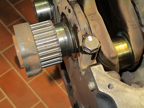 nun auf die Welle aufgeschoben. Das Zahnriemenrad folgt.