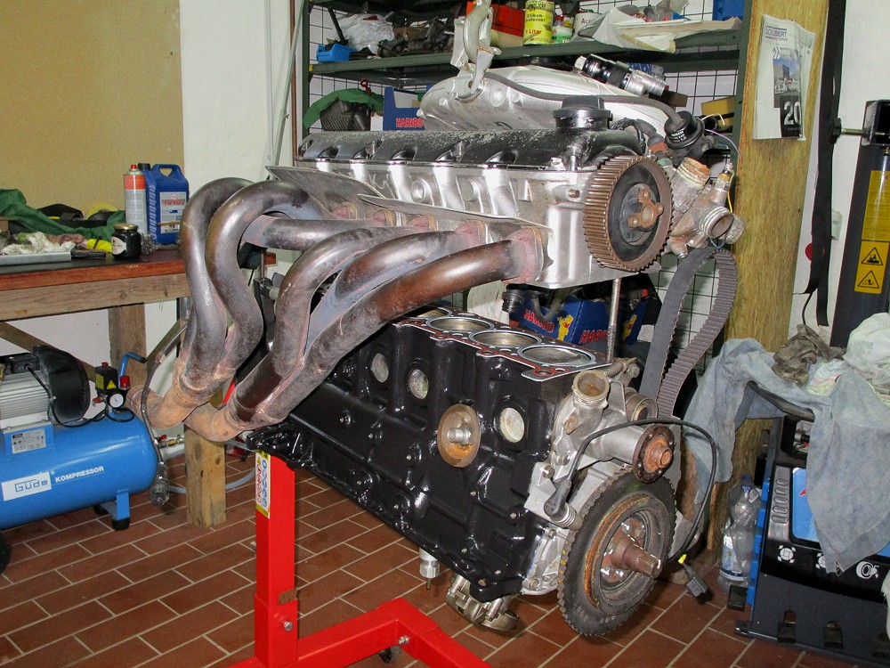 Bei Verwendung schärferer Nockenwellen ist es in der Regel nötig, die Ventiltaschen in den Kolben tiefer zu setzen. Diese Arbeiten stehen quasi bei jedem 2,7 bzw. 2,8 Liter M20 Umbau an. Für die Bearbeitung der Kolben kann man sich einen guten Motorenbauer mit Fräse suchen oder es selbst versuchen. Ich habs mal wieder selbst probiert: Das Schwierigste beim Fräsen der Ventiltaschen ist die korrekte Ausrichtung des Kolbens zum Fräser. Dazu muß man eigentlich gar nichts machen, wenn man einen alten Motorblock und einen alten Zylinderkopf benutzt. ![]() Am Zylinderkopf habe ich ein "Sichtfenster" eingearbeitet (so durchgesägt, dass gerade so beide Ventilführungen stehen bleiben). Der zu bearbeitende Kolben mit Pleuel Lager und Kurbelwelle wird eingebaut, der Zylinderkopf mit Ventiltaschenfräser draufgebaut und dann vorsichtig mit dem Akkuschrauber loslegen. Das Ganze einzeln mit jedem Kolben wiederholen. Es braucht dafür einen passenden Fräser. Den hab ich mir auch selbst gebaut: aus einen alten Einlassventil und einem Stück Schneidplatte. Einfach ein Stück aus dem Ventil rausflexen und dann das Stück Schneidplatte per Hartlöten einsetzen. ![]() Ob die Taschen tief genug sind, hab ich zum Schluss am richtigen Motor mit dem richtigen Kopf mit Knete überprüft. Als Abstand zwischen den Ventilen und den Kolben im OT sind 2mm anzustreben. ![]() Fürs Kopfaufsetzen benutze ich immer Führungsstifte. Diagonal einen vorn und einen hinten. Die Führungstifte sind alte Zylinderkopfschrauben ohne Kopf mit einem reingeflextem Schlitzangriff für dem Schraubenzieher zum späteren entfernen. ![]() Am Ende sieht die Kolbenbodenbearbeitung dann so aus. Kann man jetzt noch etwas glätten und dann steht de M20 Sportmotor nichts mehr im Weg. ![]() Autor: Michael Gericke Redaktion: Tino Trümer |