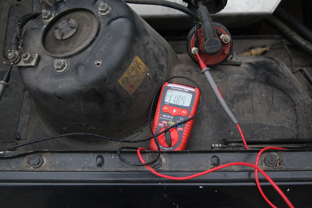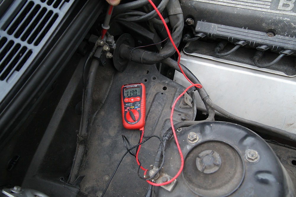 zwischen Motor und Karosse zu prüfen. Weiterhin die Batteriepole