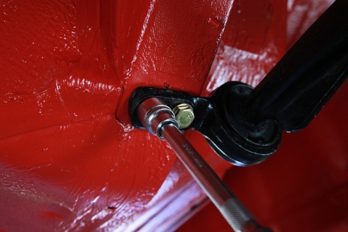 Kugelgelenk wird an der Vorderachse mit SW22 und 85Nm