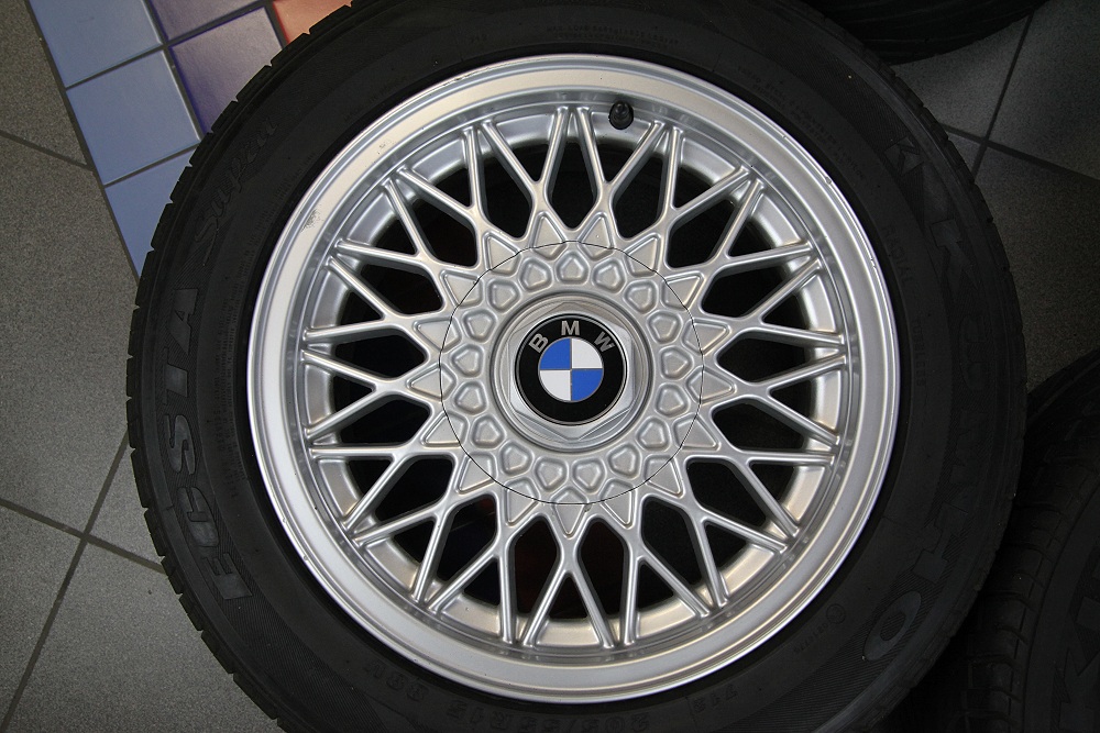 originale E30 Kreuzspeiche. Das halbe Zoll mehr an Breite und die