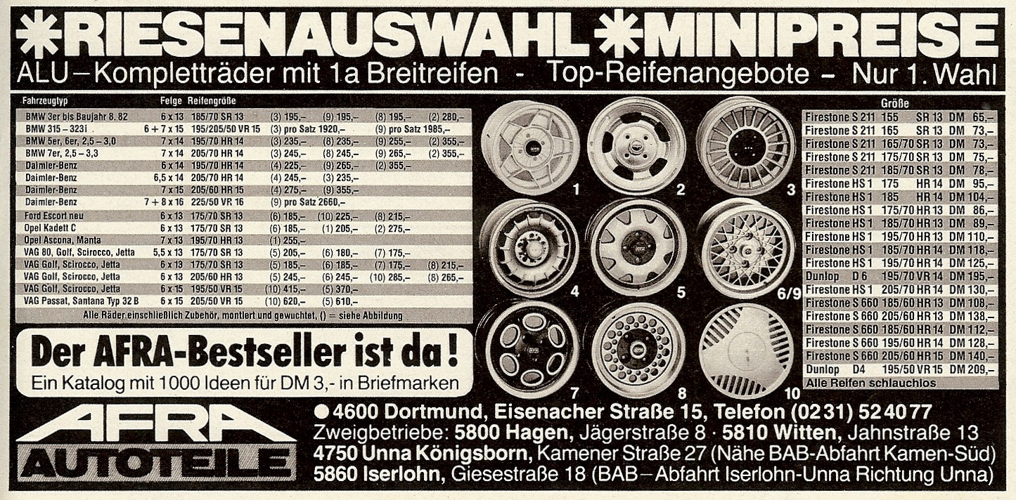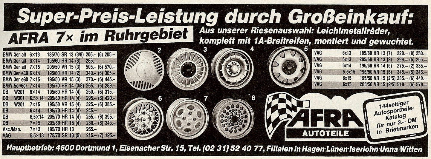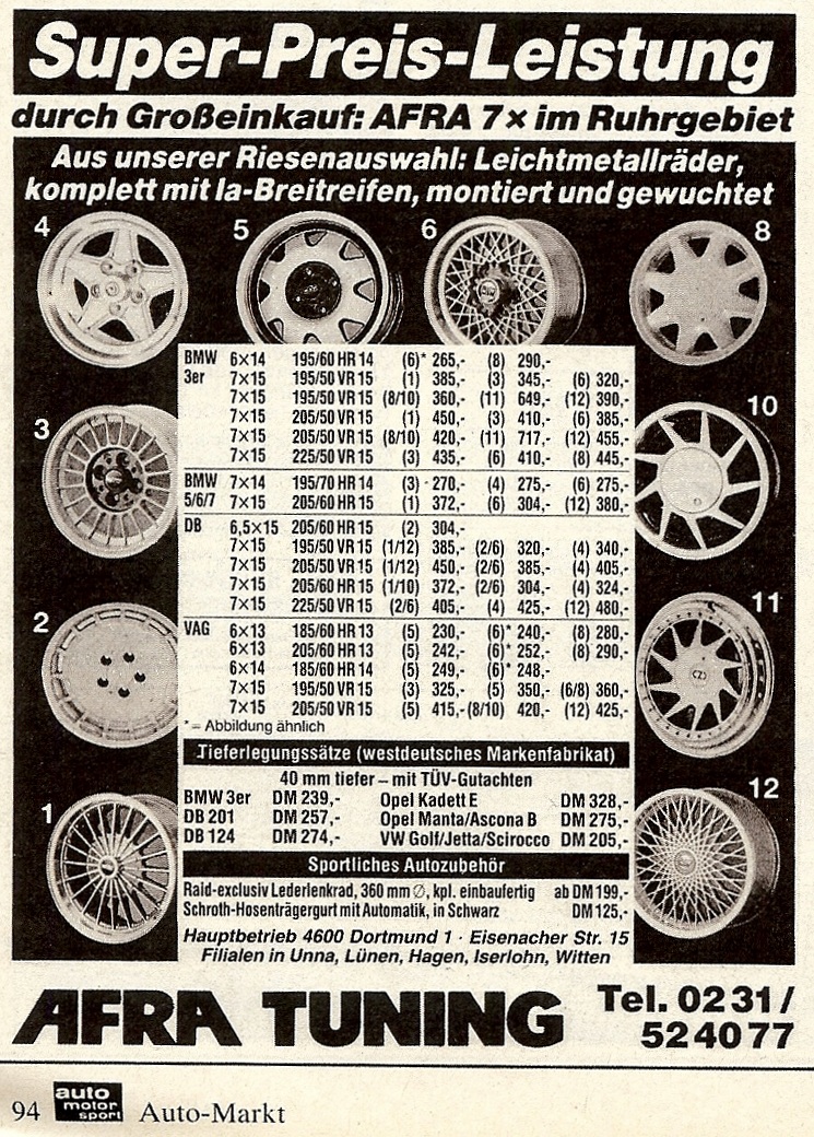 AFRA Tuning führt 1987 in ihren AMS Announcen deutlich erkennbar