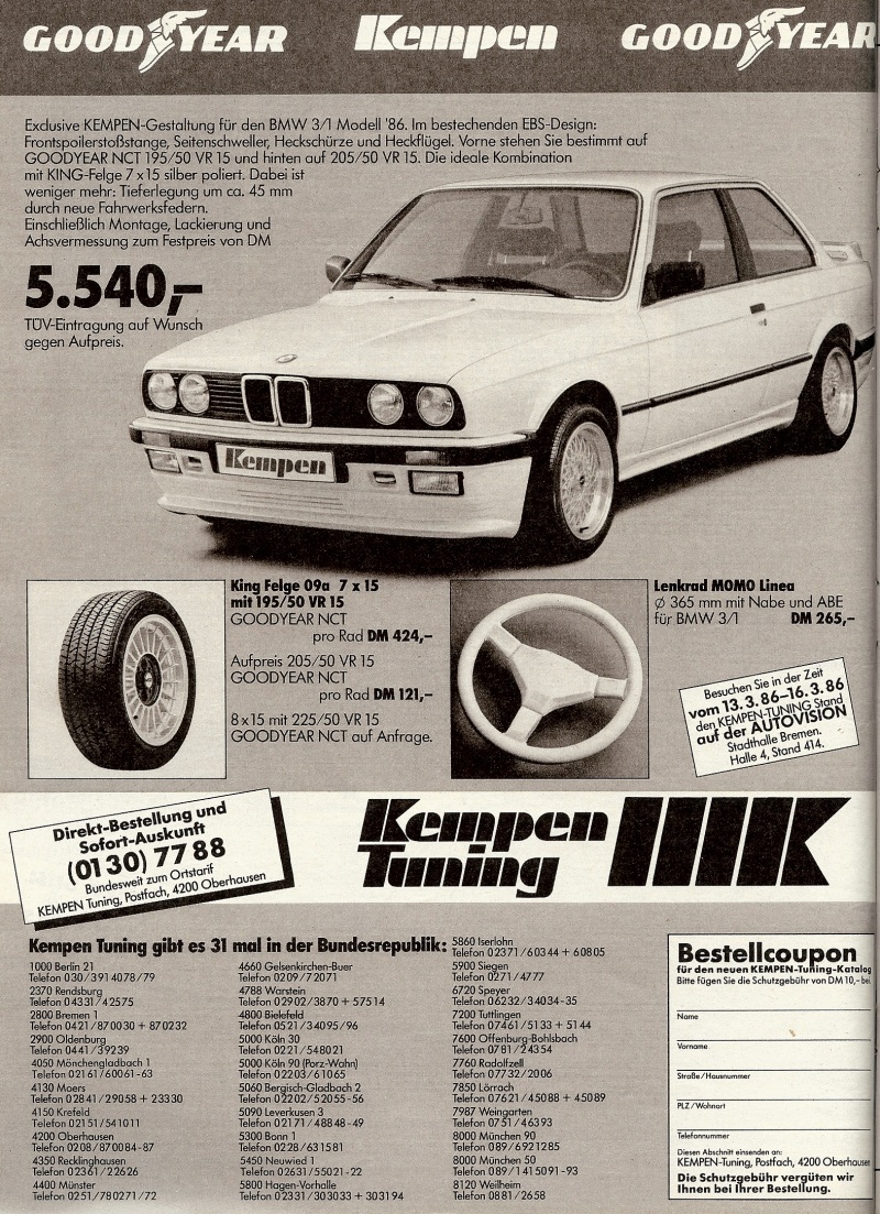Als Referenz führt die ab Werk lieferbare BMW E30
