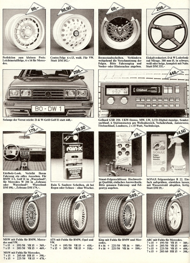 bei einem Reifenpreis von 175 DM auf einen Felgenpreis von unter 200 DM