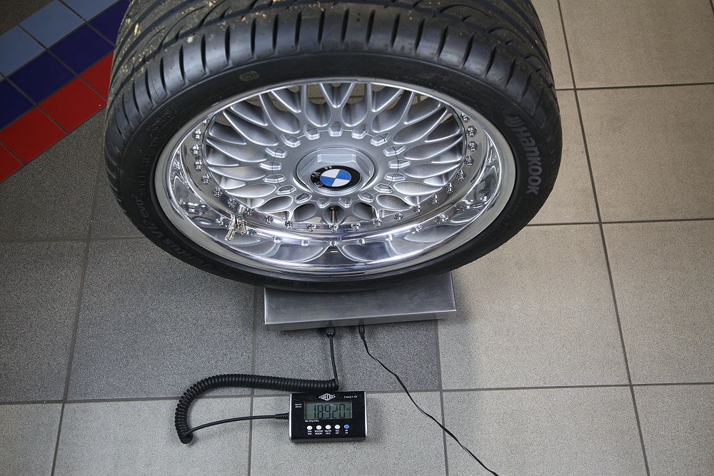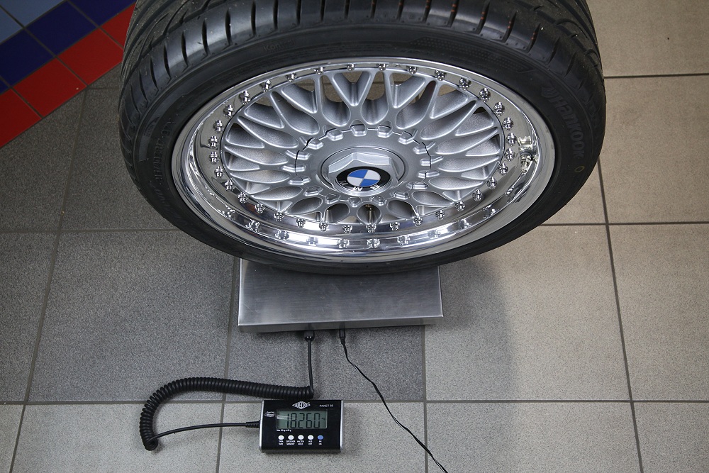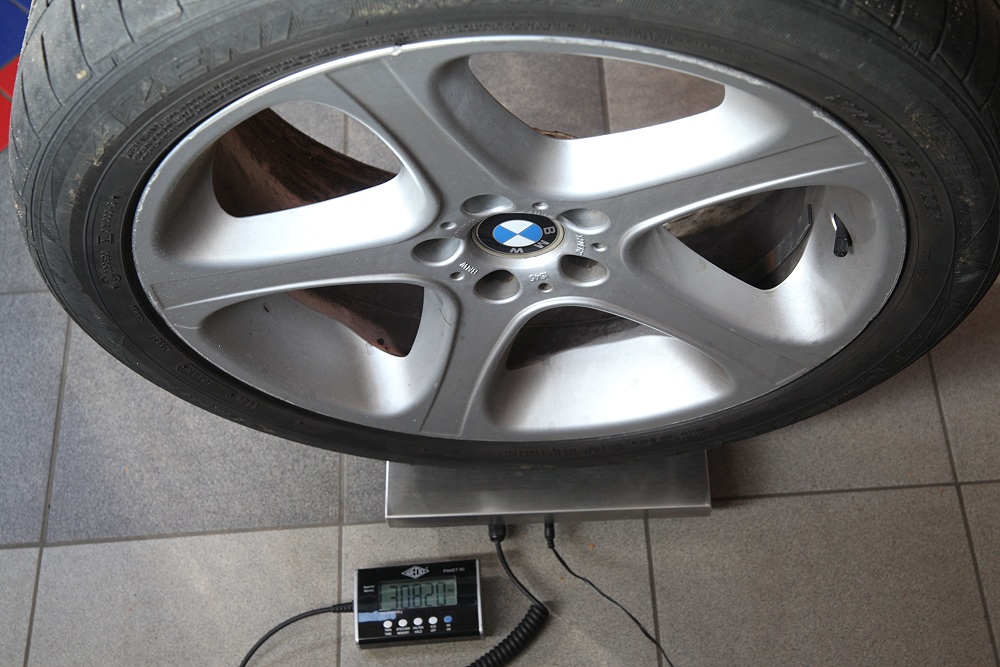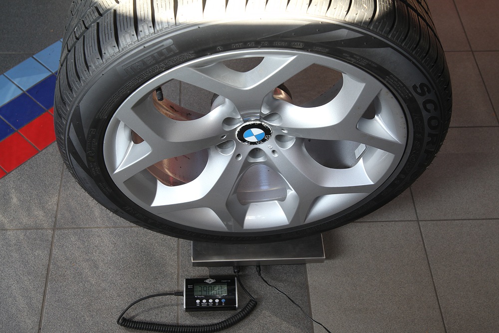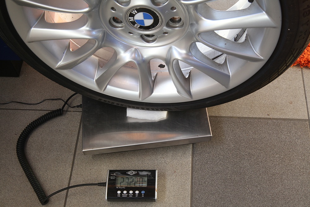 Beim E53 4.6is wiegt das Rad der Vorderachse dagegen