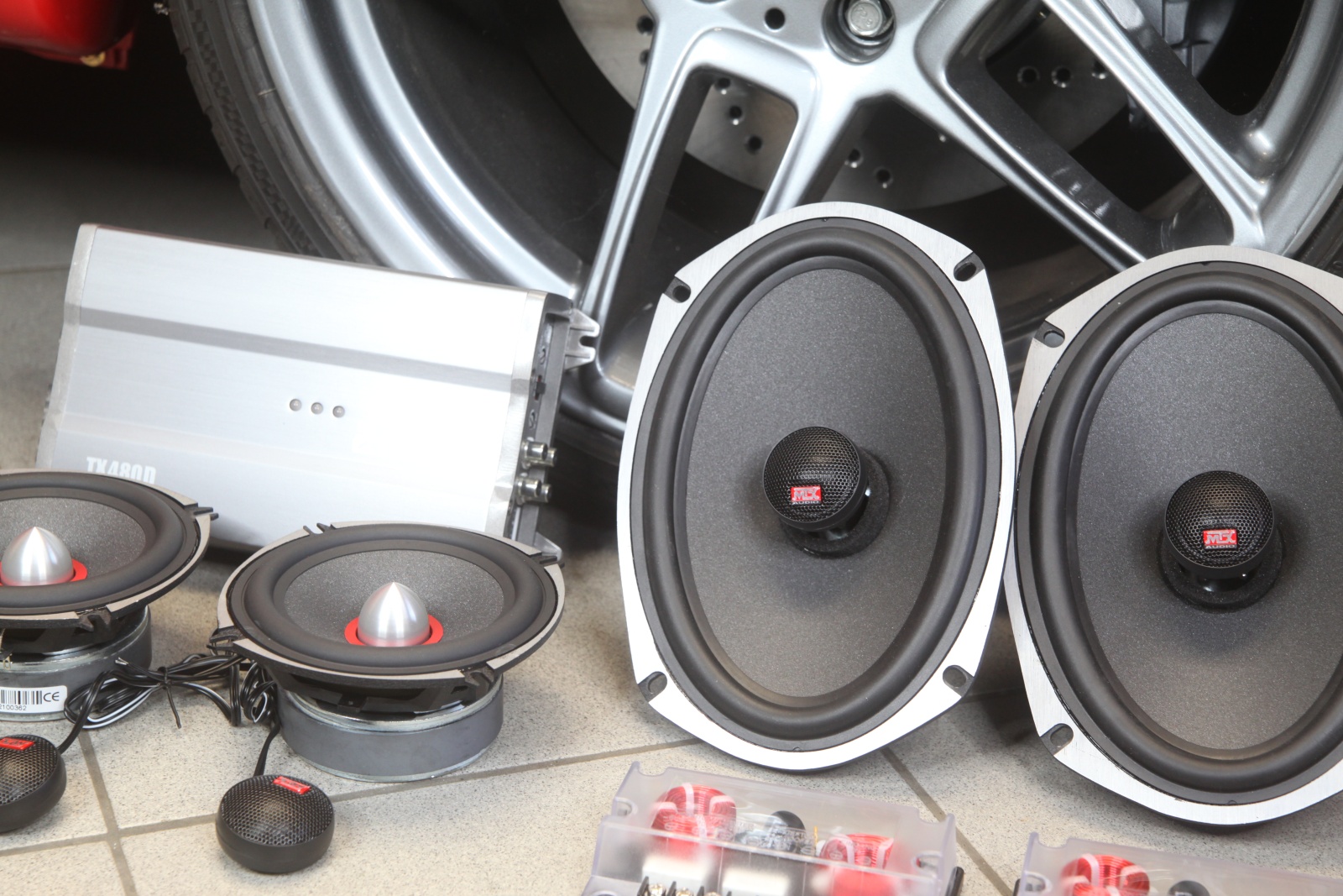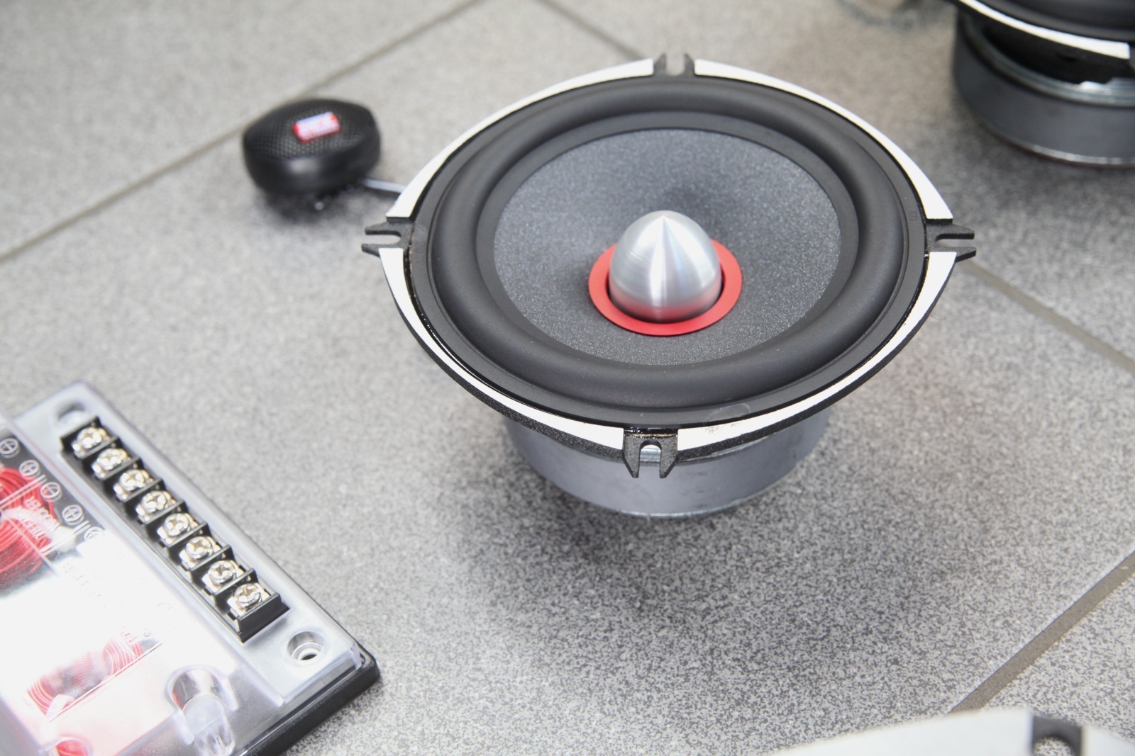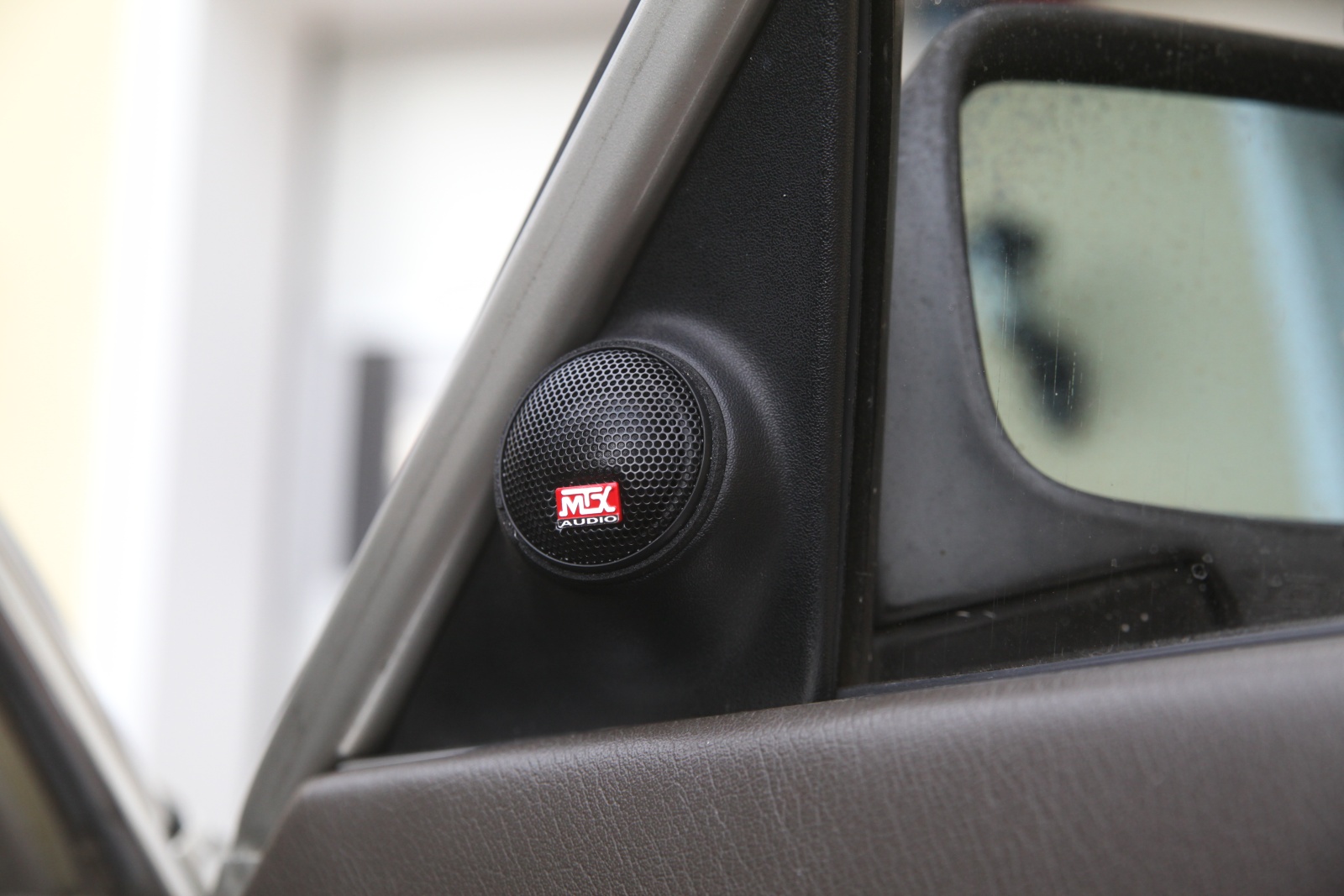 In den vorderen Fußräumen aller E30 Modelle gibt einen mäßig guten Einbauplatz für ein 13cm Chassis. Das Volumen dahinter ist recht klein und nicht wirklich dicht. Aber man kann es für einen Mitteltöner von ca. 80-2000 Hz gut nutzen. Eine Dämmung hinter dem Chassis ist erforderlich. Selbstklebende Bitumenmatten können an die Rückwand der Einbauöffnung geklebt werden. Weiterhin habe ich ein Stück handelsübliche Dämmwolle eingelegt, was im Fahrzeug natürlich im Falle von Starkregen immer so eine Sache ist. Weiterhin muss das 13cm Chassis an seinen Kanten mittels Dichtband eingeklebt werden, weil die E30 Öffnung ein paar Millimeter größer als die Standard 13cm Chassis ist. ![]() Nach Tests mit diversen 13cm Lautsprechern im Bereich von 100-250 EUR sind mir die MTX TX6 50S Systeme äußerst positiv aufgefallen. Neben einem ausgewogenem Klang war es auch die gebotene Verarbeitungsqualität der Chassis, die mich überzeugt hat. Nicht zwingend führt eine augenscheinlich gute Herstellungsqualität auch zu einem guten Sound, hier ist das aber der Fall. Ein paar Highlights im Detail: Der Hochtöner besitzt mit 28mm eine außergewöhnlich große Gewebemebran, was eben nicht zu diesem ausdünnten piepsigen Hochtönbereich diverser Billigchassis führt. Das MTX System zeigt stattdessen einen kräftigen Pegel im Hochtonbereich mit ausreichend tiefer Ankopplung an das 13cm Chassis. Der Pegel kann an der Frequenzweiche wegen dem etwas überpräsenten Einbauorts im E30 Spiegeldreieck auf -6dB abgesenkt angeklemmt werden. Den Hochtöner habe ich in die originale Blende für den E30 Hochtöner des Soundsystems eingearbeitet. Dazu muss der originale Hochtöner entfernt, die Öffnung etwas nachgearbeitet und dann der MTX Hochtöner eingeklebt werden. Ich finde das rote MTX Logo einen gelungenen Farbtupfer im klassischen E30 Cockpit, aber natürlich kann man den Hochtöner auch hinter das originale Gitter kleben. ![]() Das 13cm Chassis besitzt ungewöhnlicherweise mit einem Aludruckgusskorb. Die Schwingspule ist hinterlüftet und die Papiermembran mit Glasteilchen beschichtet. Der Plan der Ingenierure von MTX geht auf, das 13cm Chassis liefert gut ab. Ausreichend ausgewogen und vorallem hoch belastbar bildet es die Basis für den ordentlichen Klang des Frontsystems.