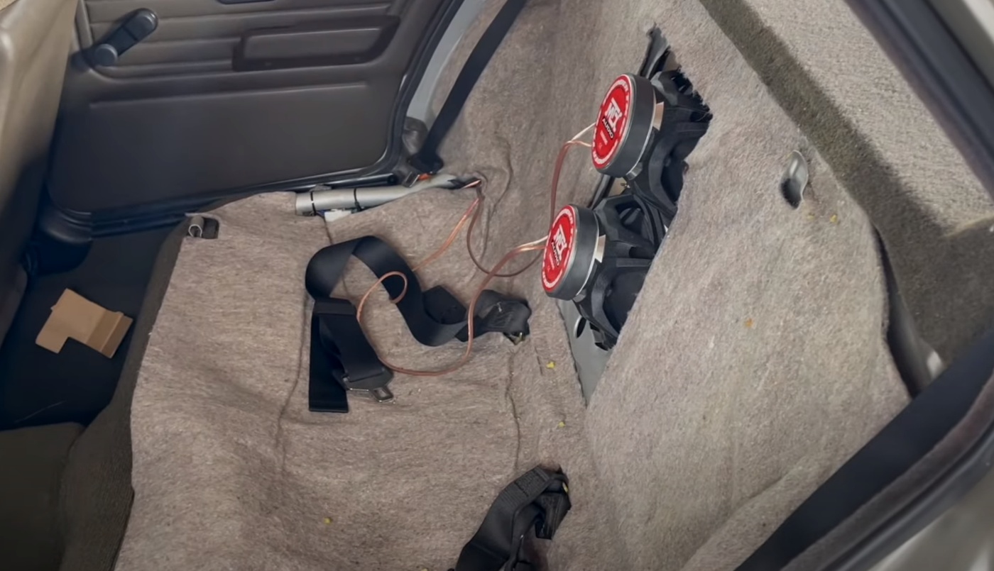 Beim Bass gehe ich mit diesem Stage 1 etwas ungewöhnliche Wege, aber ich kann Euch versprechen, es hat sich gelohnt. In der Skisacköffnung sitzen bei diesem Konzept 2 Stück ovale 6x9" Chassis, die als Subwoofer, man könnte sagen " missbraucht" werden. Eigentlich sind es Koaxial Systeme für die Heckablage. Der Hochtöner wird aber nicht genutzt, kann gerne auch abgeklemmt und ausgebaut werden. Die Chassis sind so montiert, dass die Magnete in den Innenraum ragen, weshalb die Rückbank nachgearbeitet werden muss. Dies ist im übrigen der einzige und aus meiner Sicht verschmerzbare Eingriff in die E30 Originalsubstanz. Im mittleren Bereich muss der Schaumstoff in einem Bereich von 20x35cm bis auf 3cm an den Stoff heran entfernt werden. 3cm Schaumstoff bleiben drin, damit der Stoff weiterhin in Form bleibt und im Innenraum nichts von der Basslösung in Form von verdächtigen Dellen im Stoff zu sehen ist. ![]() Von der Kofferraumseite wird gegen die Rückwand eine 19mm Sperrholzplatte verschraubt, welche die beiden 6x9" Chassis aufnimmt. Diese Platte wird an mehreren Stellen durch kleine Holzstreifen ergänzt um eine gute Abdichtung sicherzustellen. Am Ende wird die Holzplatte mit handelsüblichen Akustikstoff bespannt und damit bleibt die Basslösung auch vom Kofferraum aus unsichtbar. Es geht kein Liter Kofferraumvolumen verloren, naja fast. Die Batterie sollte bei diesem Stage 1 nach hinten verlegt werden. Elendlange Stromkabel bis in den Motorraum kann eine Car Hifi Endstufe garnicht leiden, doch dazu später mehr. Die Herausforderungen für die Lautsprecher in diesem Einbauplatz sind groß. Die meisten Subwoofer Chassis sind für kleine Gehäuse optimiert und würden am undichten 450 Liter E30 Kofferraumvolumen keinen guten Klang entwickeln. Die wenige noch verfügbaren FreeAir Subwoofer von Kicker, MTX und AudioSystem gehen bei 25cm Durchmesser los und passen somit nicht in den vorgestanzten Bereich der E30 Skisacköffnung. Zwei Stück 6x9" sind größenmäßig für die unveränderte Skisacköffnung optimal, weshalb zunächst frisch überholte Infinity CS1 Bässe in dieser Größe in mein Auto einzogen. Damit war der Sound schon echt gut, schöner Tiefbass, aber wenig Kick und in Summe auch nicht übermäßig belastbar. Man konnte die Basschassis recht schnell in mechanische Begrenzung bekommen. Die 25mm Schwingspulen der CS1 Bässe waren dem Pegel des MTX Frontsystem nicht gewachsen. Also habe ich versuchsweise die MTX TX6 69C Lautsprecher geordert, eigentlich nur um die ganze Anlage nachbausicher zu machen. Also nichtsahnend die Infinitys raus und die MTX eingebaut und dann mal wieder ein bisschen Soundcheck gemacht. Zunächst musste ich den Basspegel etwas zurücknehmen, was schon mal ein gutes Zeichen war. Fazit ist, die MTX TX6 69C legen nochmal eine ordentliche Schippe drauf, was Wirkungsgrad, Präzision und Belastbarkeit angeht. Somit war der optimale Lautsprecher für diese ungewöhnliche Einbauöffnung gefunden. ![]() Damit das Ganze gut funktioniert, sind einige Dinge zu beachten. Die Bass-Chassis müssen wegen der Einbaurichtung verpolt zum Frontsystem angeschlossen werden, aber das ist ja eigentlich klar. Die Holzplatte muss an den Auflageflächen mit Dichtband am Klappern gehindert werden. Grundsätzlich müssen oberhalb der Chassis und seitlich mit kleinen Holzplatten größere Undichtheiten beseitigt werden. Die Chassis sollten im Idealfall auf ein geschlossenes 450 Liter Kofferraum Volumen arbeiten. In der Praxis gibt immer irgendwo Luft, aber das ist weit weniger schlimm, als irgendwelche klappernden Bleche.