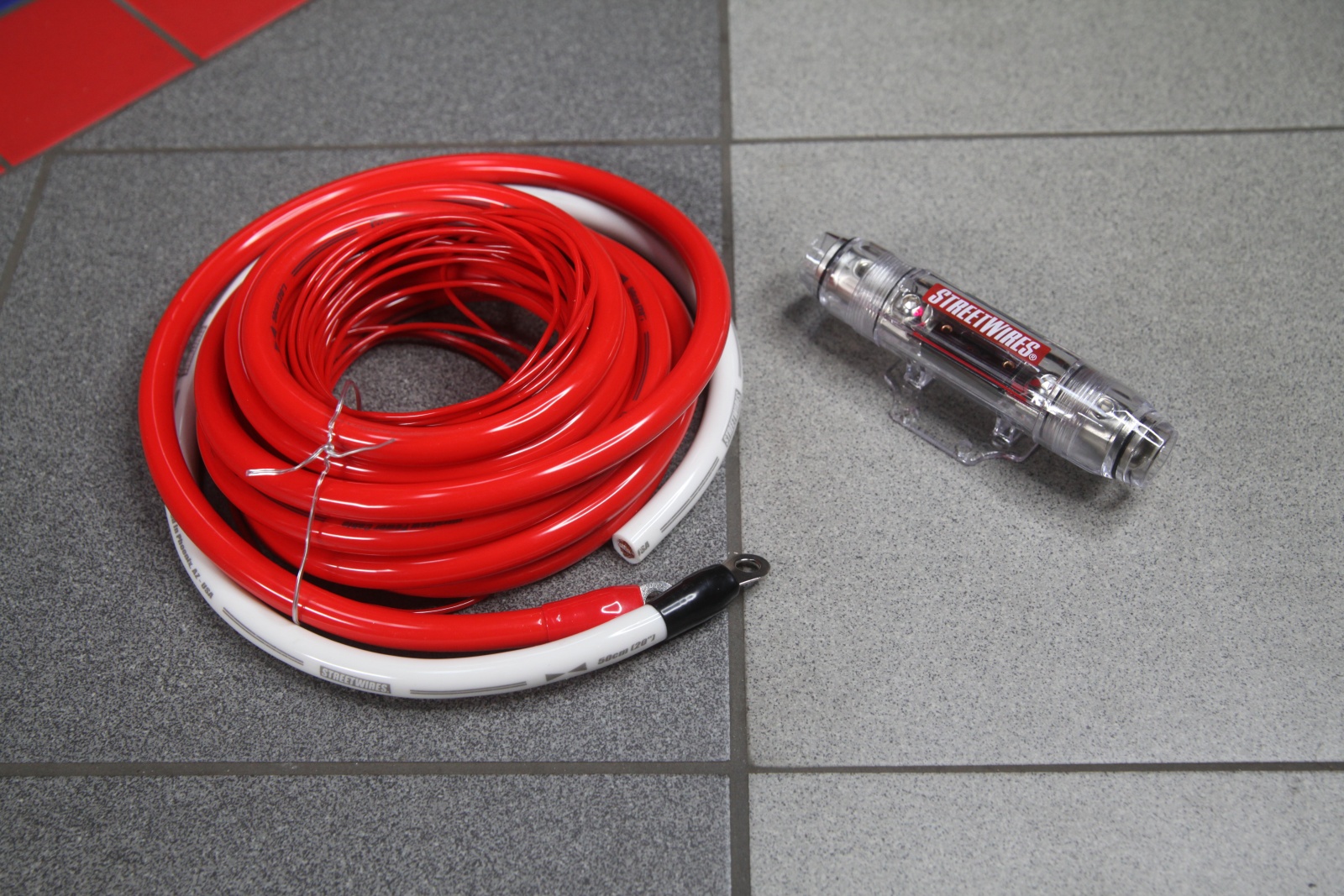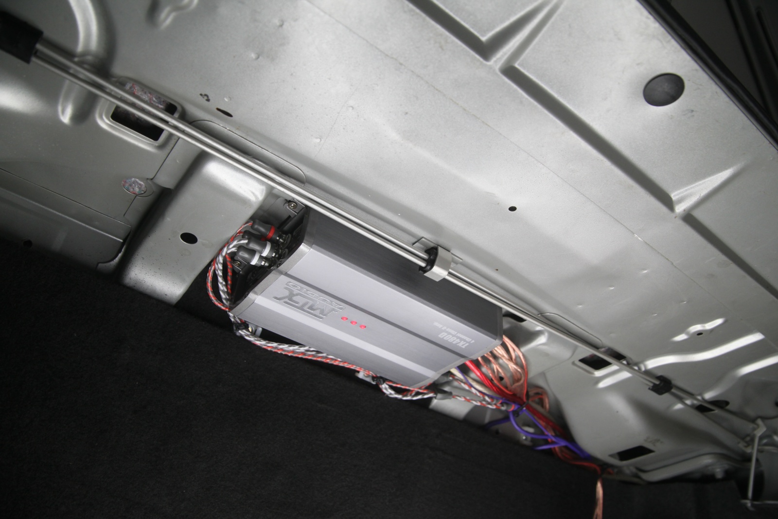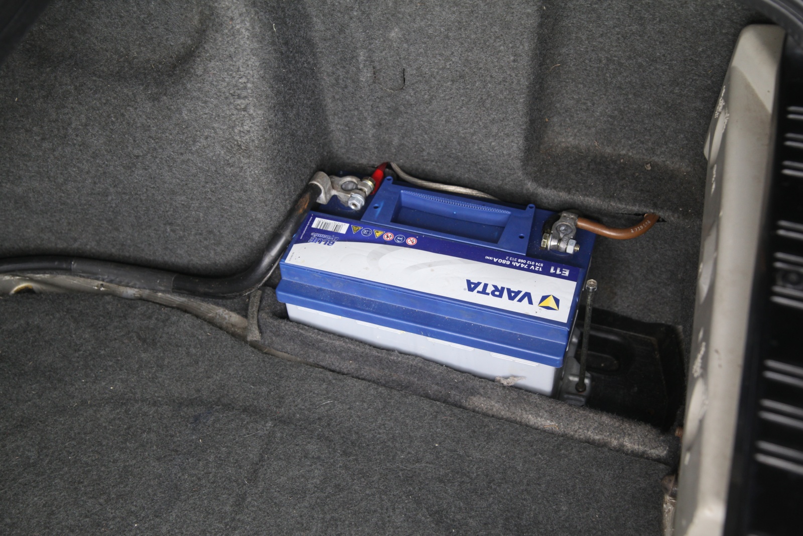 Das Radio habe ich über die originale BMW Verkabelung mit Strom versorgt. Die Lautsprecherausgänge des Radios werden in diesem Setup nicht mehr genutzt, weil sie klanglich in keinster Weise mit jeglichen externen Endstufen mithalten können. Zwischen Radio und Endstufe muss eine (dünne) Remote Leitung verbaut werden, damit beim Anschalten des Radios auch die Endstufe mit angeht. Diese Leitung war früher oft in den Chinchleitungen integriert. ![]() Die Batterie sollte nach hinten in den Kofferraum versetzt werden, so wie es bei jedem E30 325i ab Werk der Fall war. Die Endstufe wird dann mit mindestens 10qmm besser 20qmm Leitungen auf kurzem Wege an die Batterie angeschlossen. In die Plusleitung kommt unmittelbar nach dem Batteriepluspol eine 50-100A Flachsicherung um die Kabelstrecke gegen Kurzschluß abzusichern. In die MTX 480D Endstufe können dicke Leitungen direkt angeschlossen werden (ohne Kabelschuhe). 35qmm sind maximal machbar. Die Minusversorgung der Endstufe wird nicht zur Karosserie, sondern ebenfalls bis zum Batteriepluspol verlegt. In den Einbauplatz im Kofferraum hinten rechts passt problemlos eine 95A Batterie, gerne eine frische die noch knackige Stromstöße liefern kann. ![]() Ein Zusatzkondensator 1F ist nach meinen Tests nicht zwingend erforderlich, kann aber natürlich auch nicht schaden. Er müsste in unmittelbarer Nähe (unter 10cm Kabelweg) zur Endstufe verbaut werden.