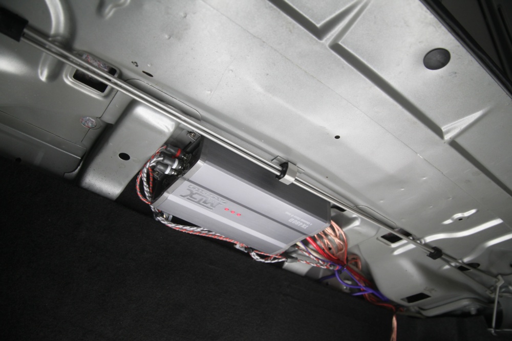Die Hifi Stage 1 Lösung setzt ein 13cm Zweiwege System in den vorderen E30 Original Öffnungen in Fußraum und Spiegeldreieck ein. Wesentlicher Clou und Basis für das fantastische Klangerlebnis ist die unsichtbare Basslösung in Bereich der Rückbank. Eine kompakte digitale 4-Kanal Endstufe sorgt für den nötigen Pegel bei kleinsten Platzbedarf. Die Frontsysteme sind natürlich bei rund 80-100Hz nach unten abgekoppelt, müssen also nur Oberbass spielen. Ab 80 Hz setzen dann die Subwoofer von hinten ein. Diese sind kaum ortbar und fügen sich harmonisch ins Klanggeschehen ein. Auf ein Hecksystem (in der Hutablage) wird in meinem Auto verzichtet, ein solches System kann mit ein bisschen Aufwand aber ebenfalls integriert werden, wenn z.B. eh Werkslautsprecher vorhanden sind. ![]()