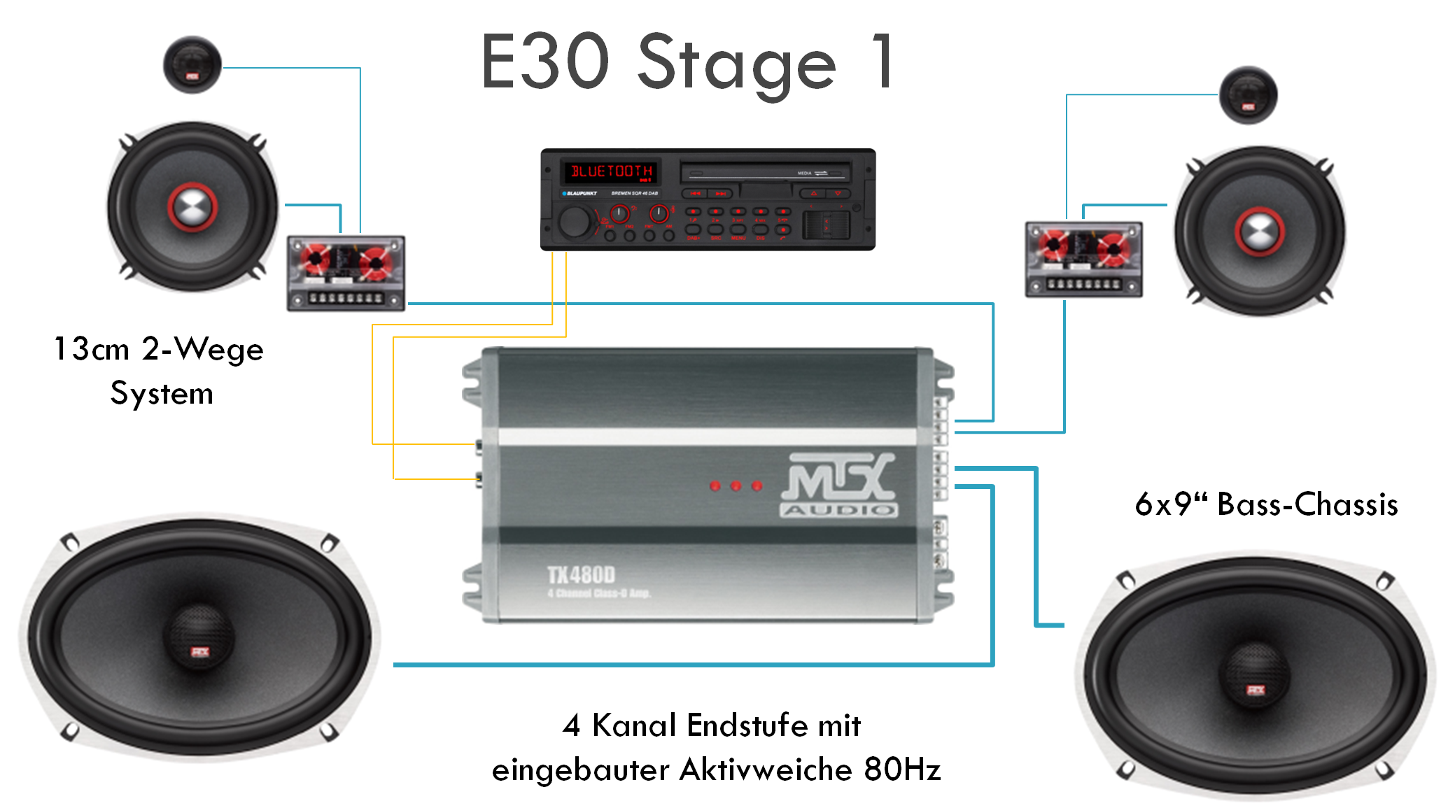 Für die 2 und 4 türigen E30 Limousine habe ich ein dezentes, aber kraftvolles Audiokonzept entwickelt, welche ich hier mit Euch teilen möchte. Für Cabrio, Touring und M3 ist sie nicht 1:1 umsetzbar, aber da ist ebenfalls schon was in Arbeit.